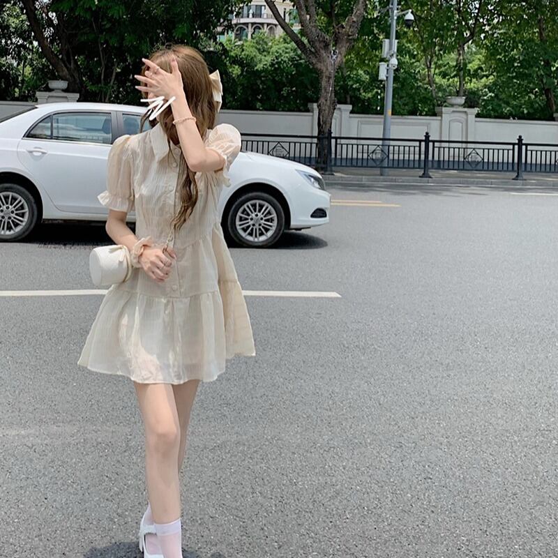 スリーブシャツ ワンピース夏服プリーツショートスカート 夏物 コーデ Marchs32798886218