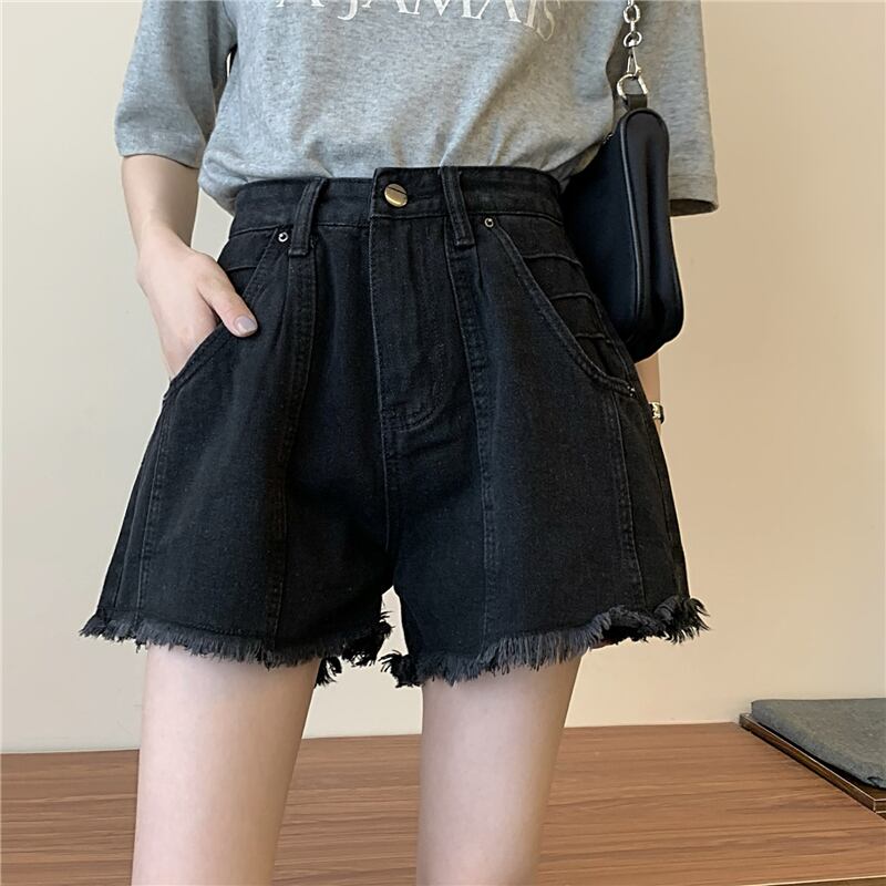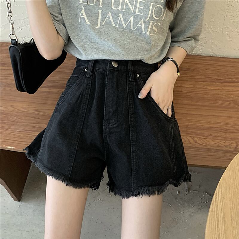ショーツ 夏服韓国ファッションNEWブラックハイウェストAラインパンツ 夏物 スタイル ウエスト コーデ Marchs71901155199