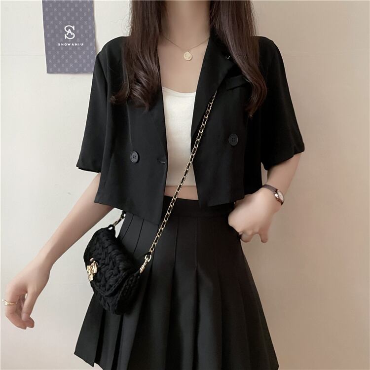 夏服薄手ショート韓国ファッションルーズブラックトップス ストリート 夏物 スタイル コーデ Marchs20847334170