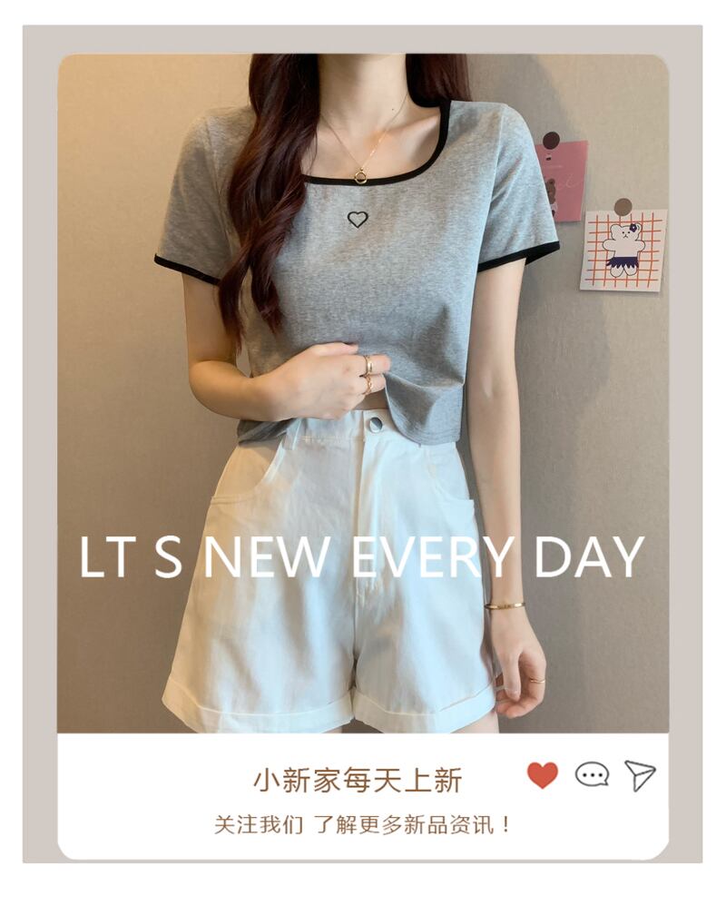 トップス ショートハイウェストウェスト刺繍半袖スリーブTシャツレディース夏服 ハーフスリーブ 夏物 スクウェア ウエスト コーデ Marchs62809456571