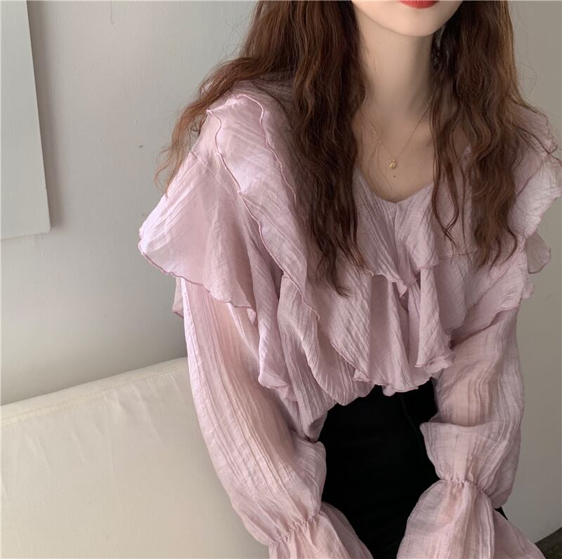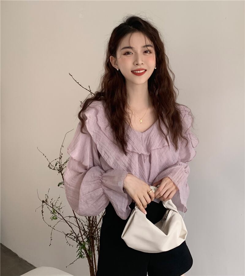 Vネックシフォンシャツ スプリング夏服トップス 春物 夏物 コーデ Marchs38628290273