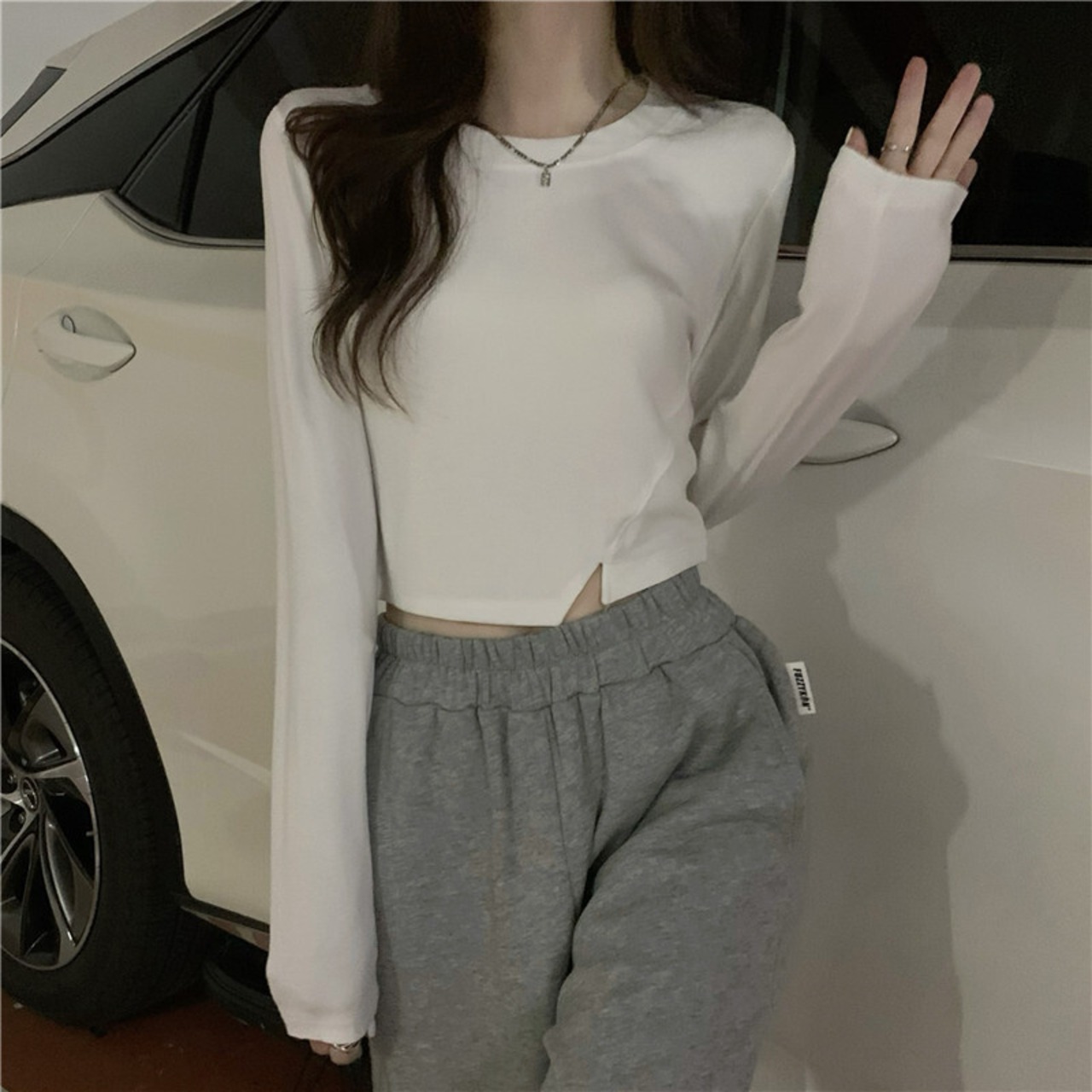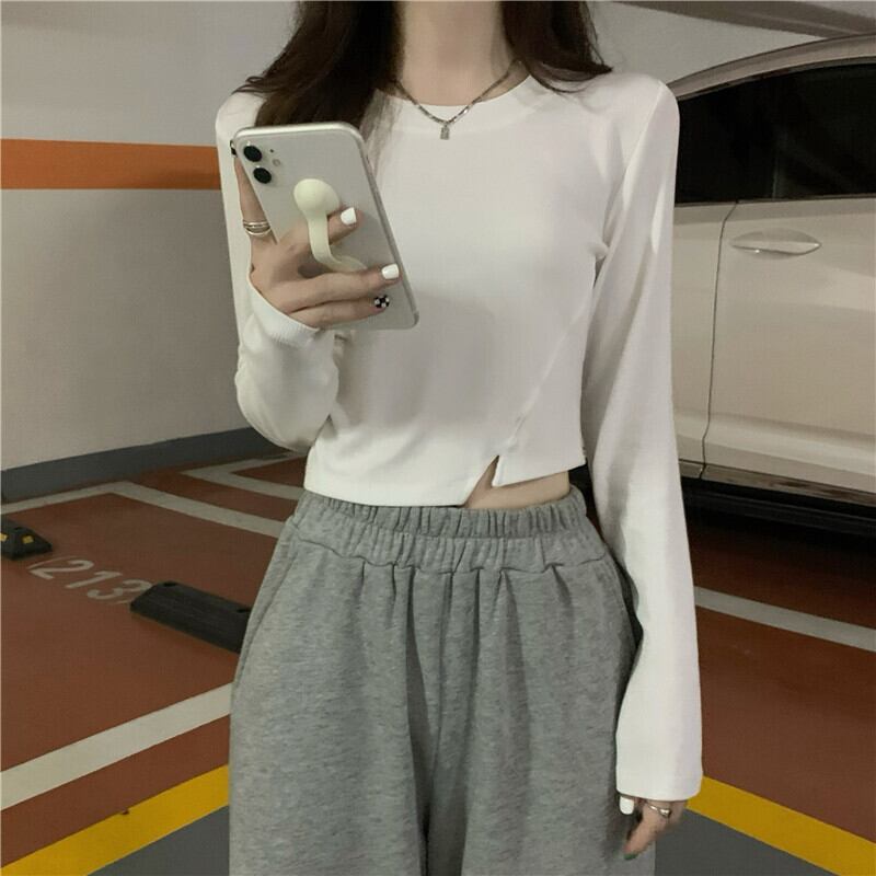 ホワイトTシャツシャツ スプリングゆったりスリムショートトップス ロング 春物 長袖 コーデ Marchs57713712948
