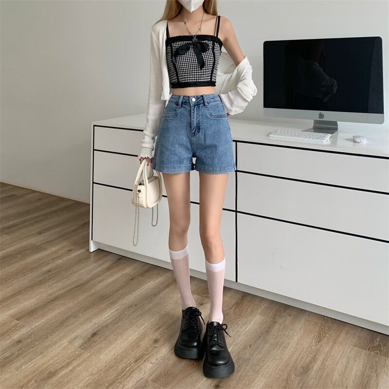 ショーツ ハイウェストウェスト夏服ワイドレッグパンツ 薄手ブラックNEW ストリート 夏物 ワイドパンツ ウエスト コーデ Marchs1939067881