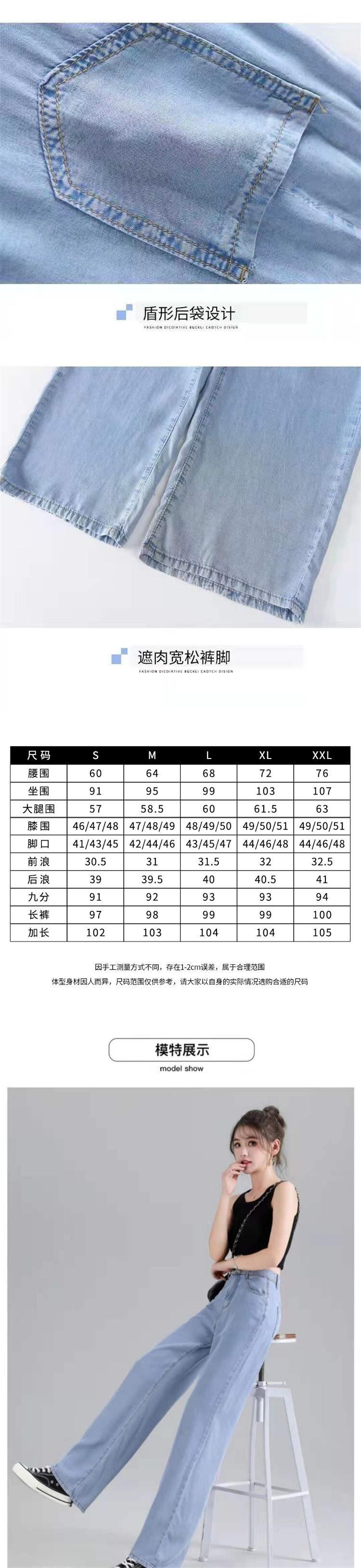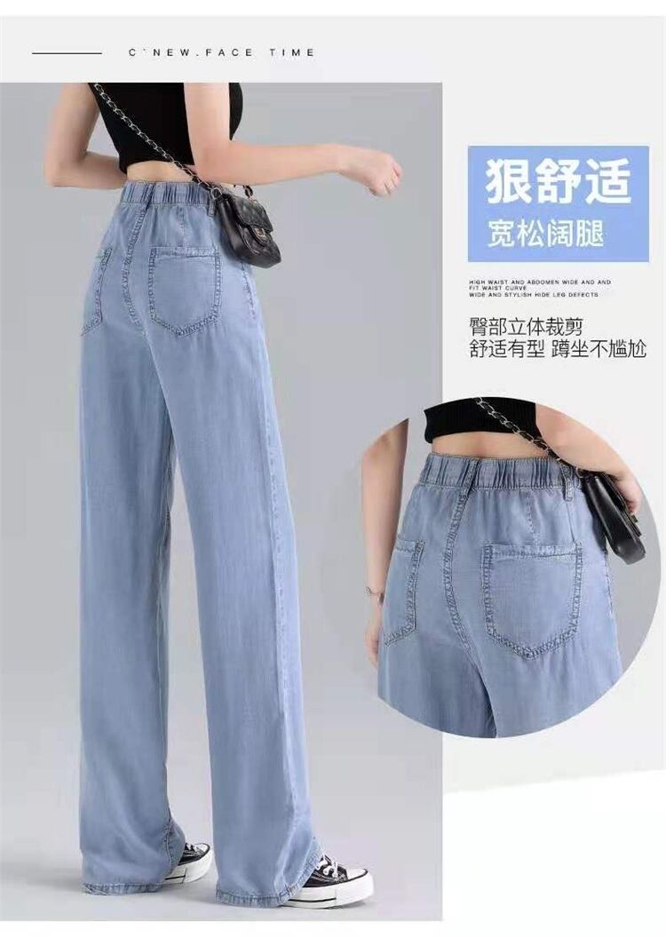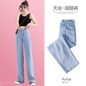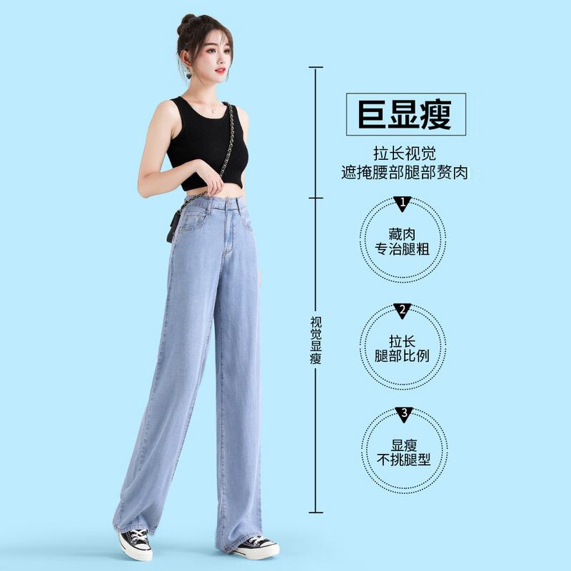 夏服ジーンズ 薄手パンツ ハイウェストウェストワイドレッグ 夏物 ワイドパンツ シルク ウエスト コーデ Marchs78370175540