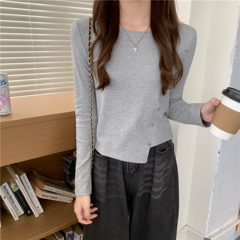 Tシャツシャツ スプリングハイウェストショートゆったりトップス ロング 春物 長袖 ウエスト コーデ Marchs35044032150