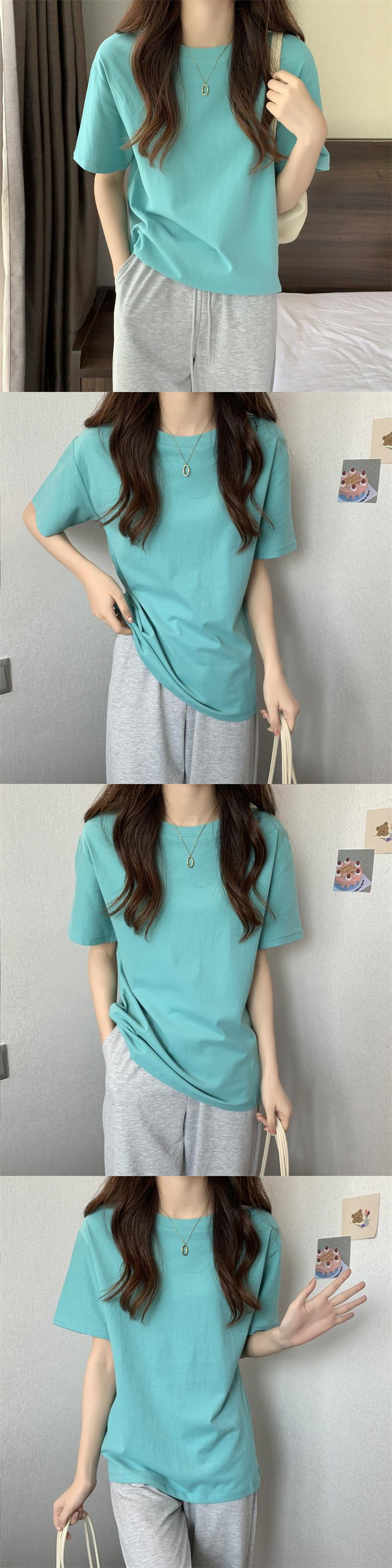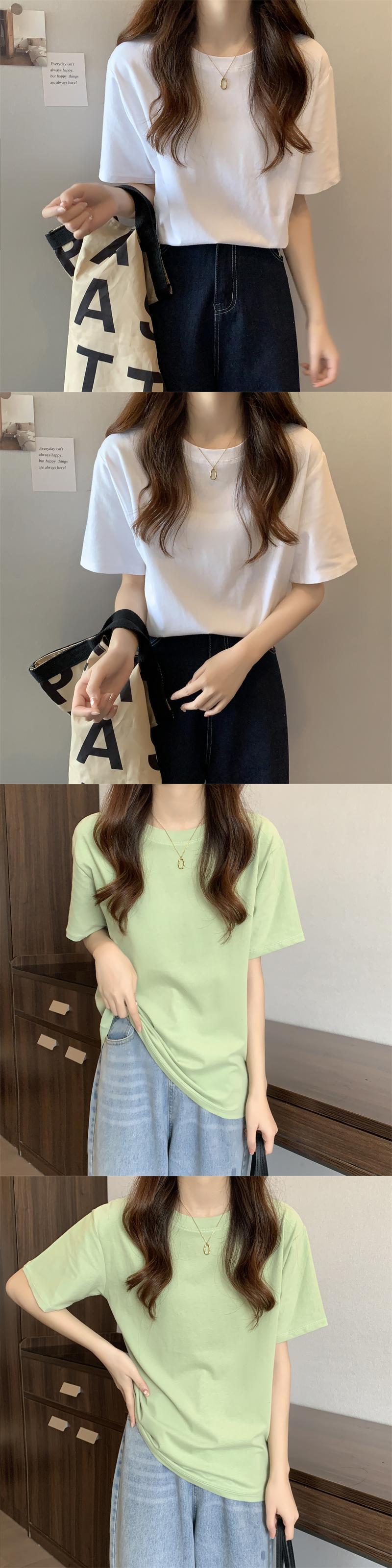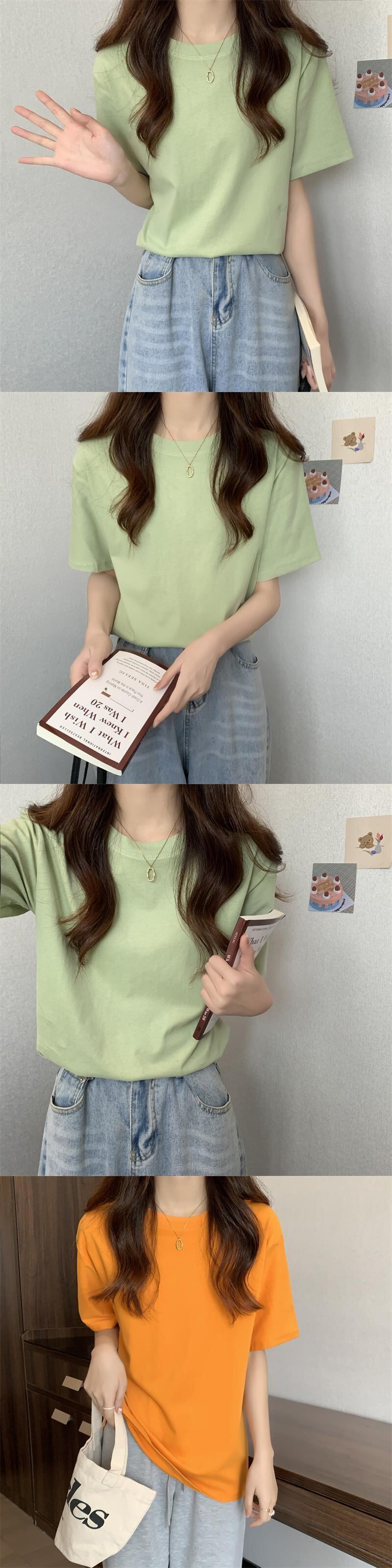 ラウンドネックルーズTシャツシャツ 夏服ゆったりベーシックトップス コットン 夏物 Oネック コーデ Marchs57035266721