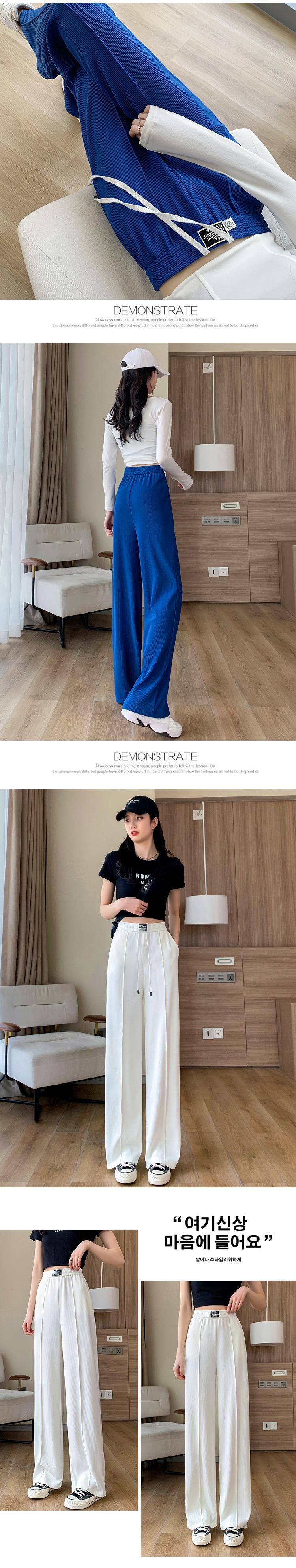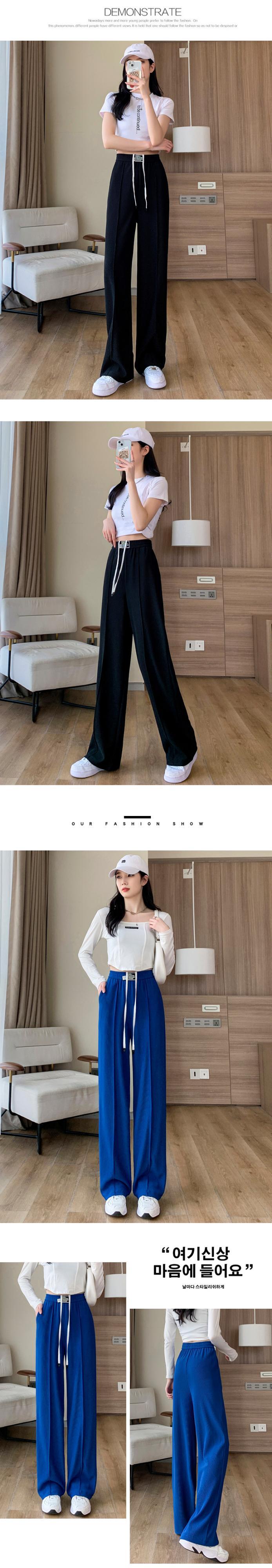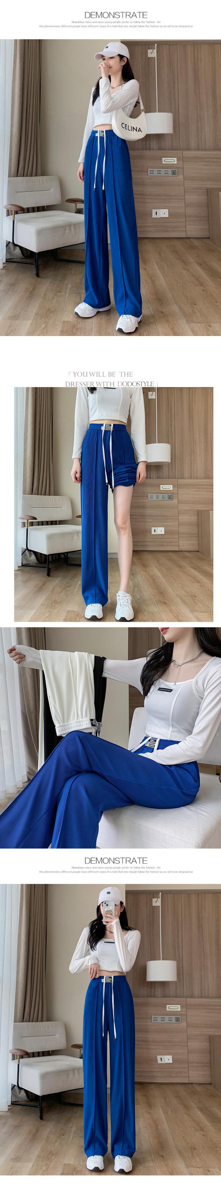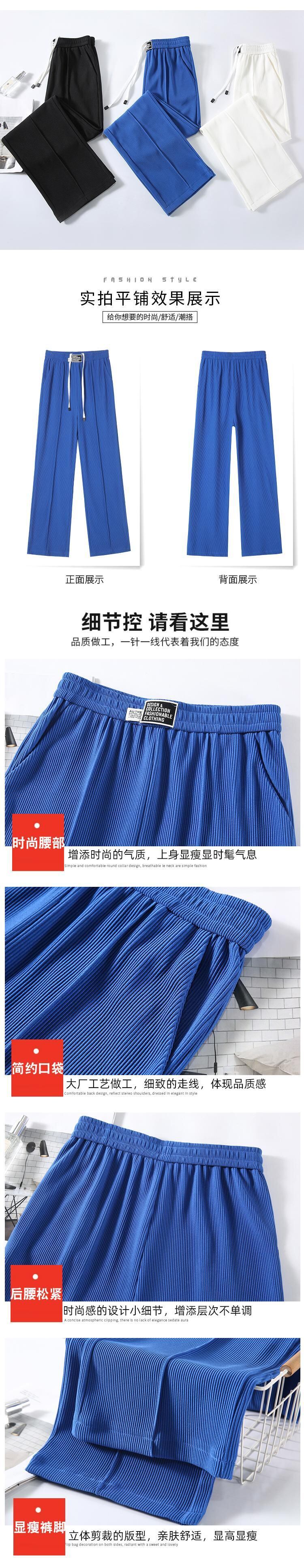 ブルーワイドレッグパンツ 夏服薄手ハイウェストウェストギャザー 大きめサイズ 夏物 ワイドパンツ シルク ウエスト コーデ Marchs74009267425