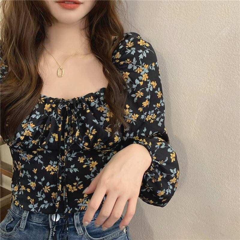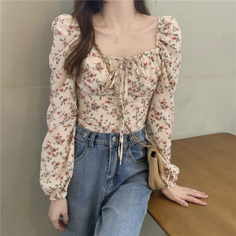 カラーフローラルシャツ スプリングスリーブショートトップス 大人ガーリー スウィート キュート カジュアル 春物 花柄 スクウェア コーデ Marchs85070150158