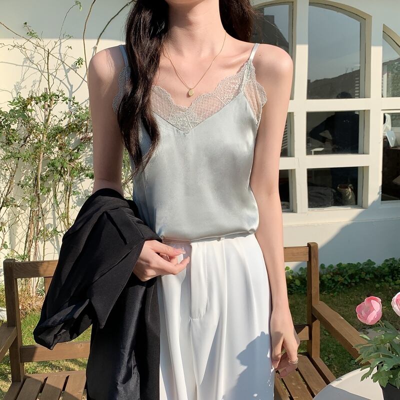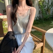 レースVネックゆったりノースリーブトップス シルク コーデ Marchs13722013870