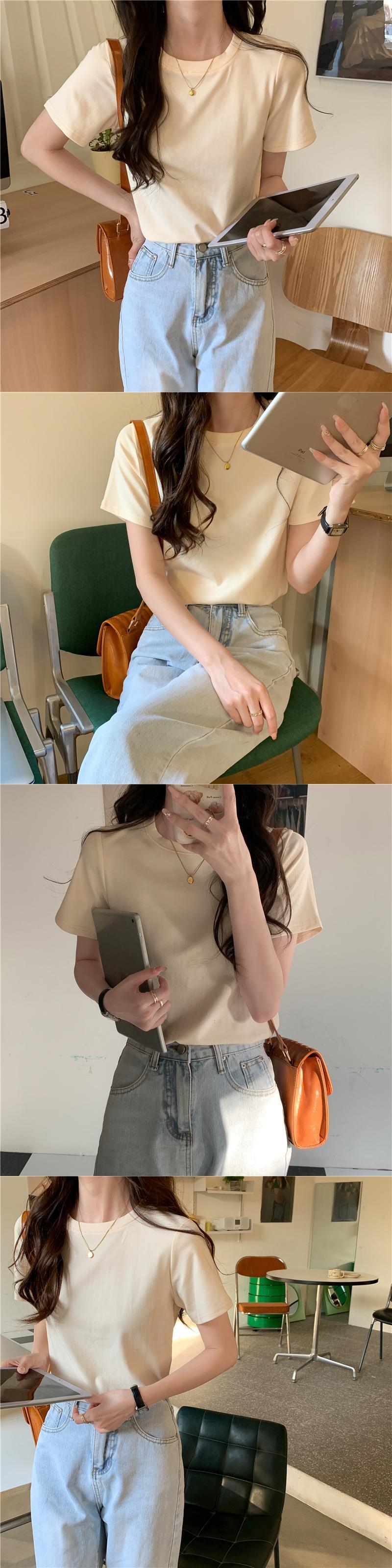 グリーンTシャツルーズ夏服ラウンドネックカラートップス 夏物 Oネック コーデ Marchs34243740278