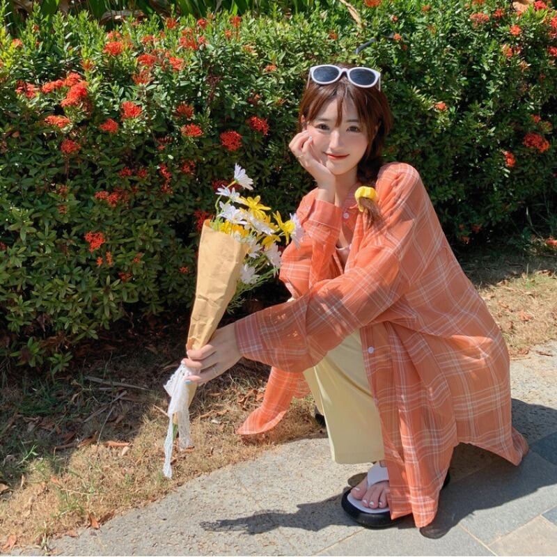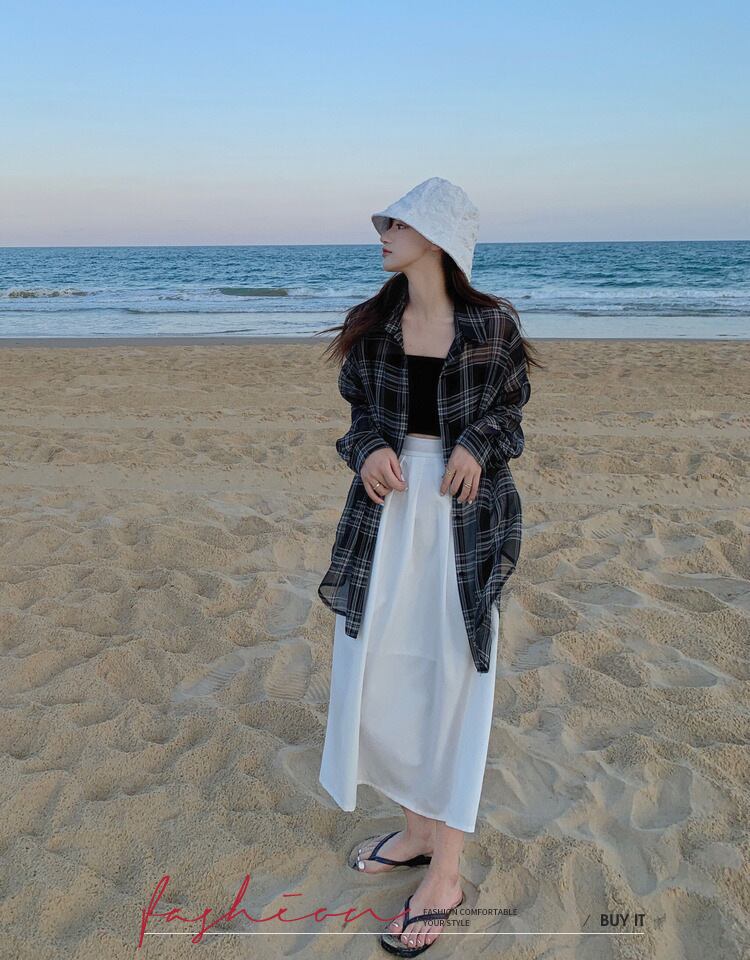 格子柄シャツ 夏服薄手ロングジャケット スタンダードスタイルカーディガントップス レトロ 夏物 コーデ Marchs55406859151