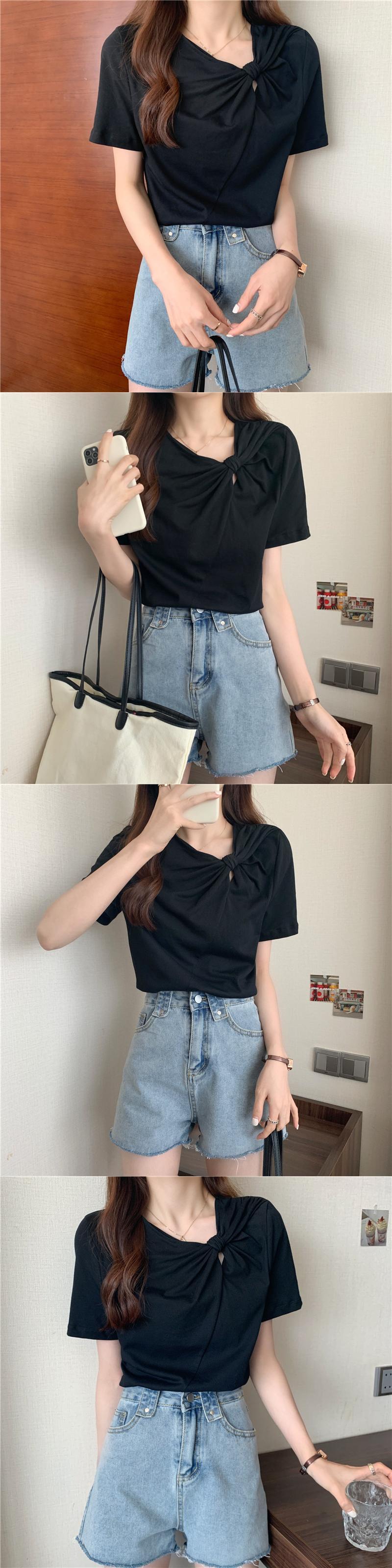 夏服スリムショートTシャツ薄手ホワイトトップス コットン 夏物 シルク コーデ Marchs63860003343