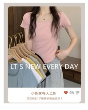 夏服ブルーショートTシャツNEWスリムトップス 夏物 スクウェア コーデ Marchs30881163469