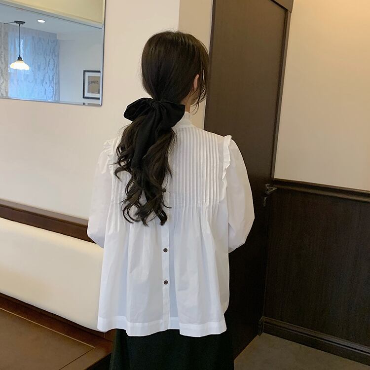 スタンドカラーカラーホワイトシャツ ルーズスプリングゆったり 大人ガーリー スウィート キュート カジュアル 春物 コーデ Marchs10642536603