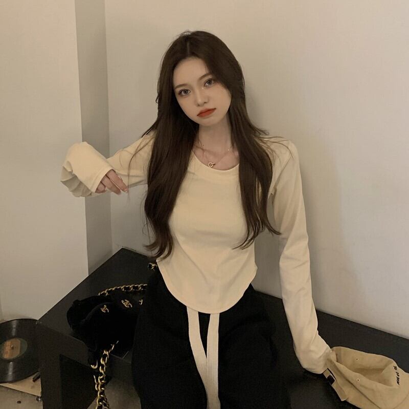 イエローTシャツシャツ スリムゆったりスタイルショートトップス ロング ピュア 長袖 コーデ Marchs15992120698