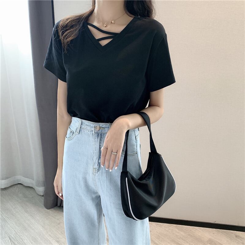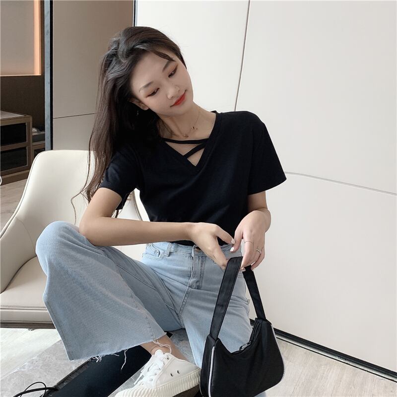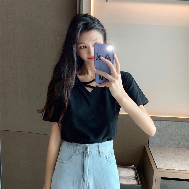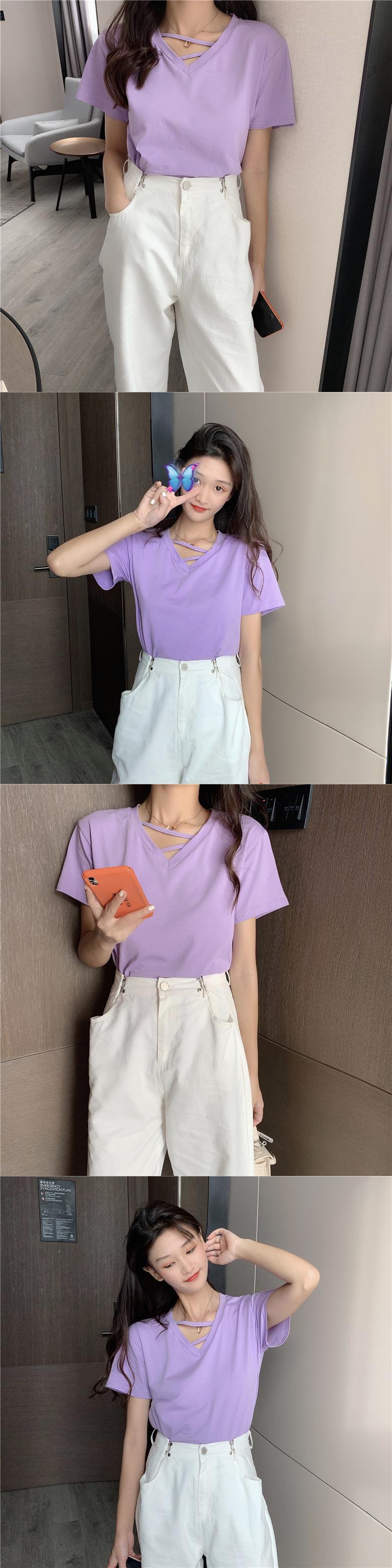 夏服シャツTシャツレディースルーズVネック韓国ファッショントップス 夏物 コーデ Marchs38372627290