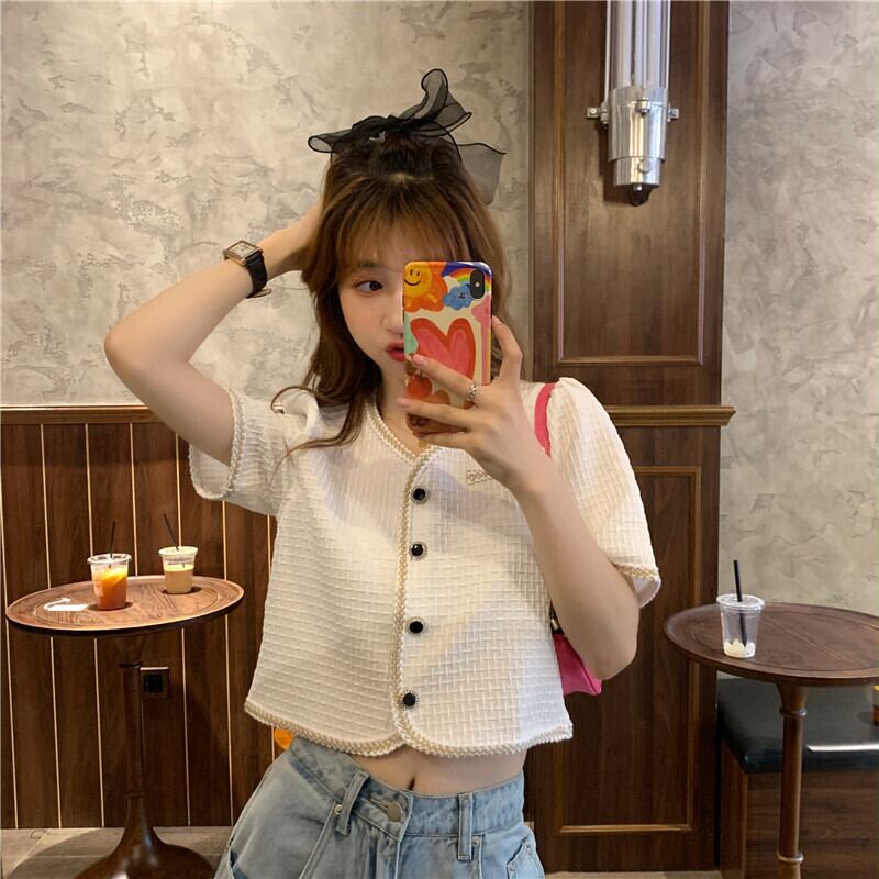 ホワイトショートシャツ スプリング韓国ファッションスタイルトップス 春物 コーデ Marchs14442510299