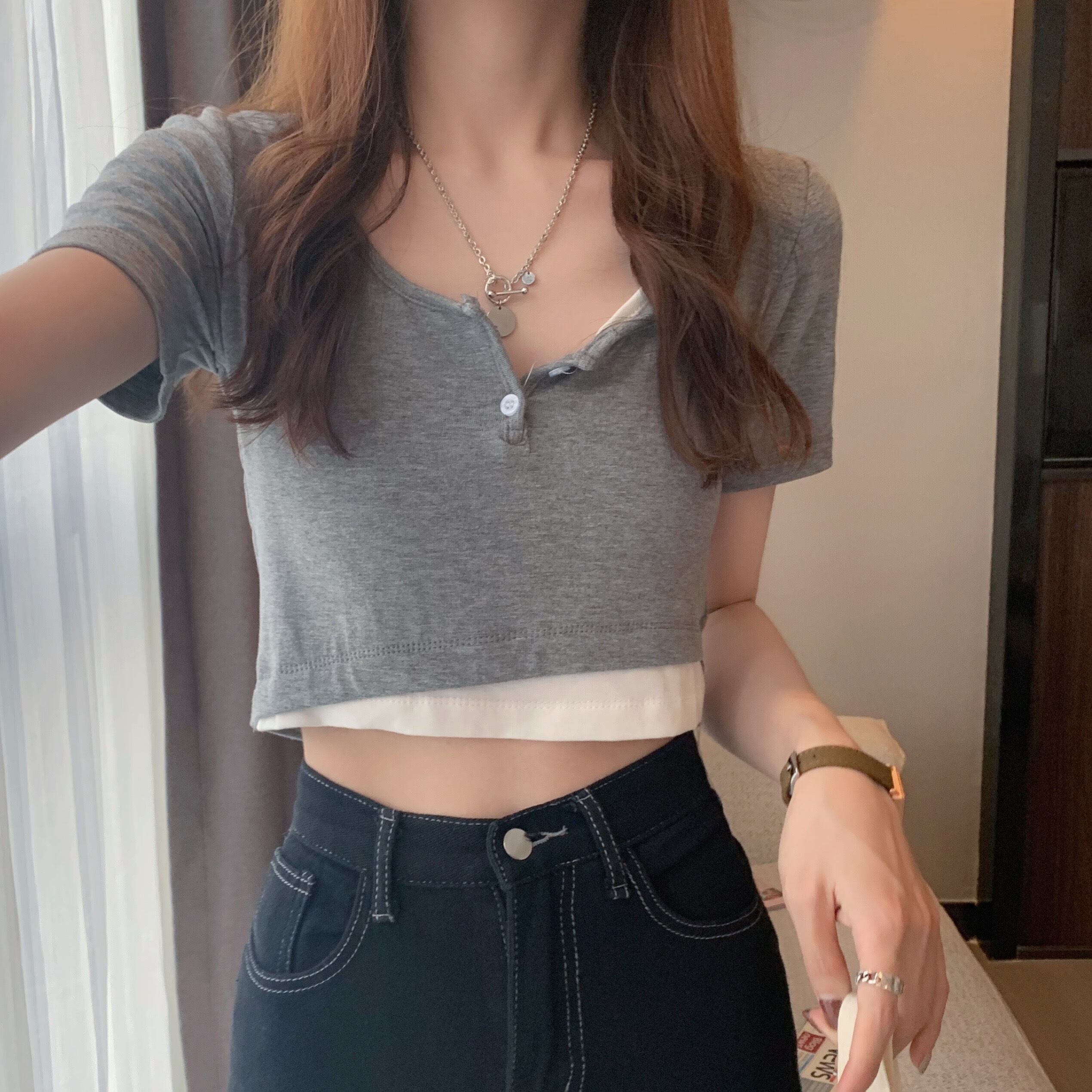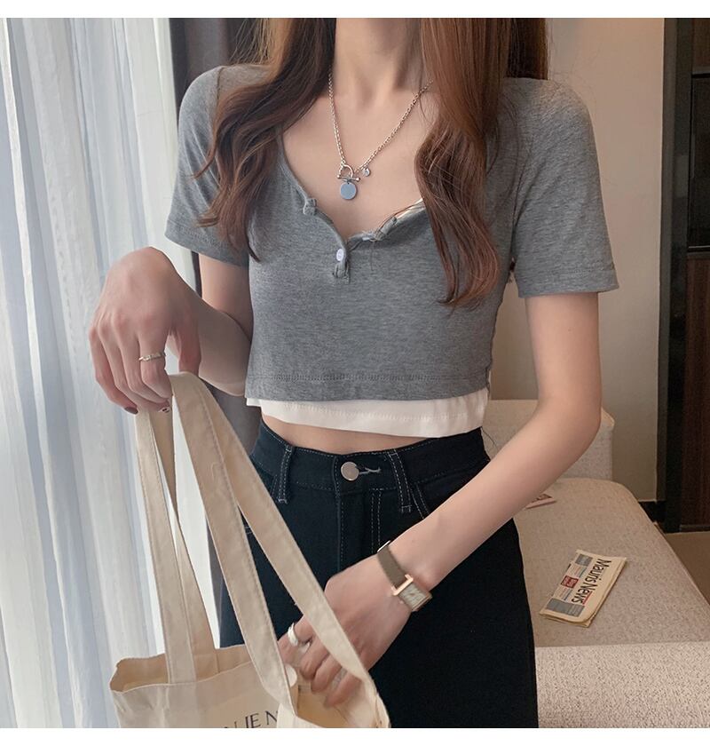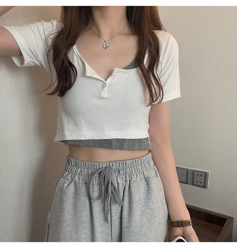 スリムVネックショートTシャツ夏服トップス 夏物 ウエスト コーデ Marchs57919908754