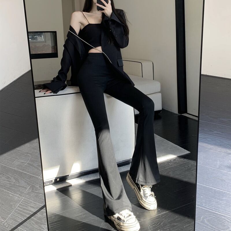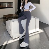 ウェストストレッチスリムフィットパンツ レディースNEWハイウェストワイドレッグ レッド エラスティック 伸縮 ワイドパンツ ウエスト コーデ Marchs64065463139