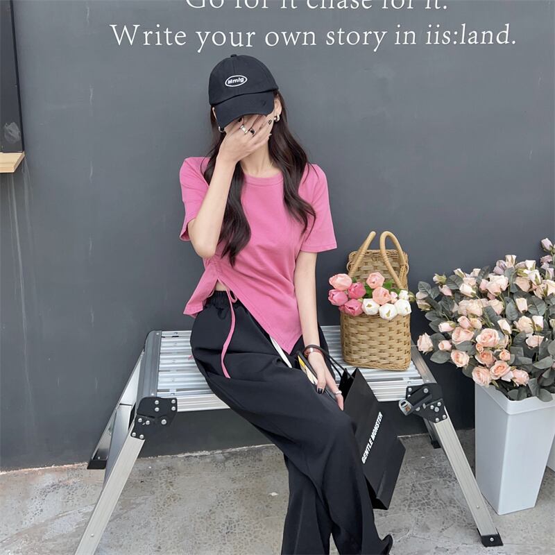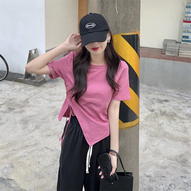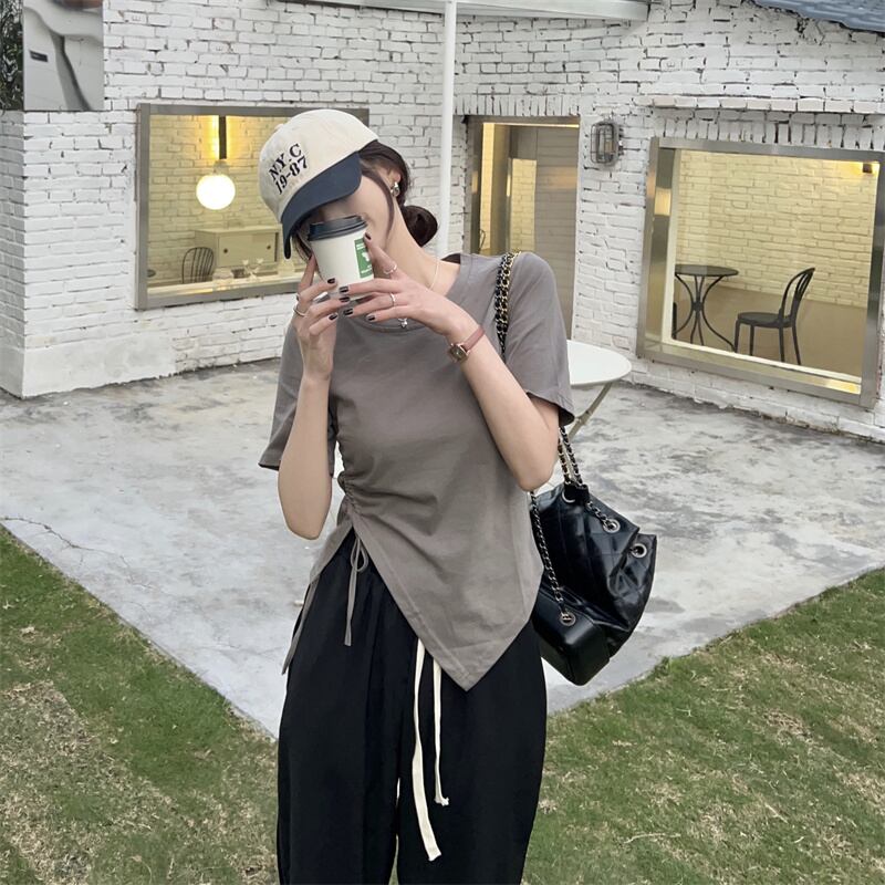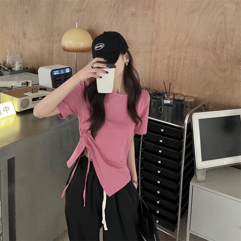 パウダースリムショートTシャツ夏服ギャザートップス 夏物 コーデ Marchs57031016673