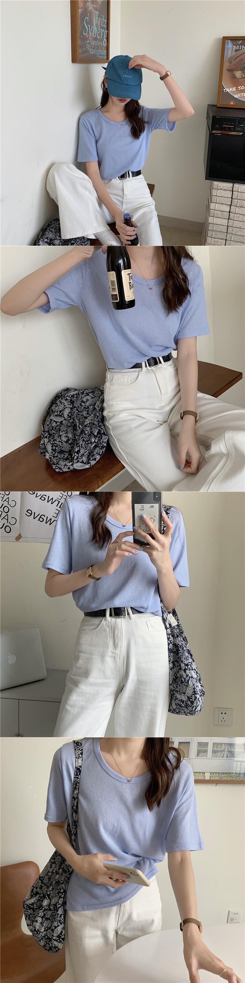 ラウンドネック薄手ホワイトルーズ夏服Tシャツゆったりトップス 夏物 Oネック コーデ Marchs57880548259