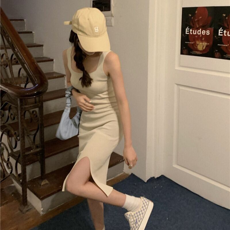 ニットワンピーススプリングソリッド カラーショートスタイルスカート 春物 ソリッドカラー スクウェア コーデ Marchs94706542415
