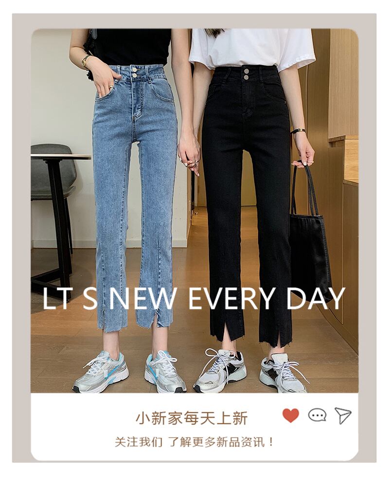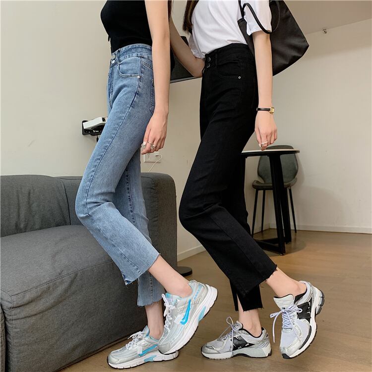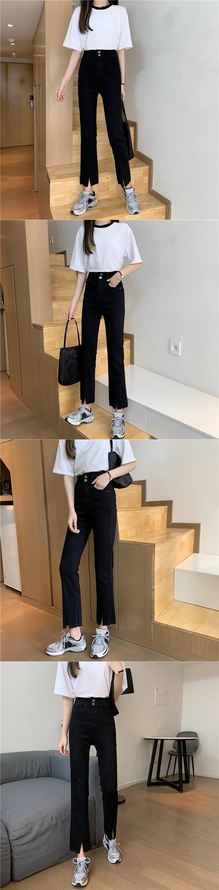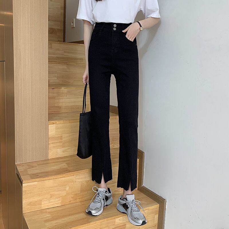 ジーンズ 夏服ウェスト薄手パンツ スリットスタンダードストレッチ レトロ エラスティック 伸縮 夏物 ウエスト コーデ Marchs6263148691