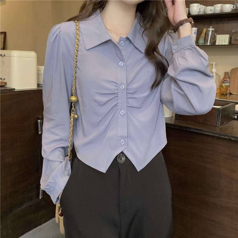 スプリング秋物スタイルシャツ レディースブルーショートトップス 春物 オータム コーデ Marchs54354307657