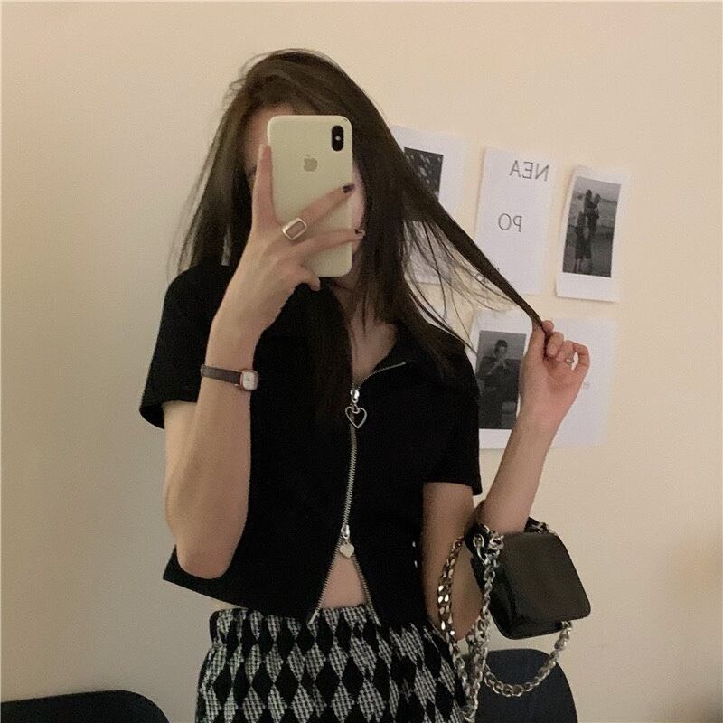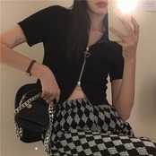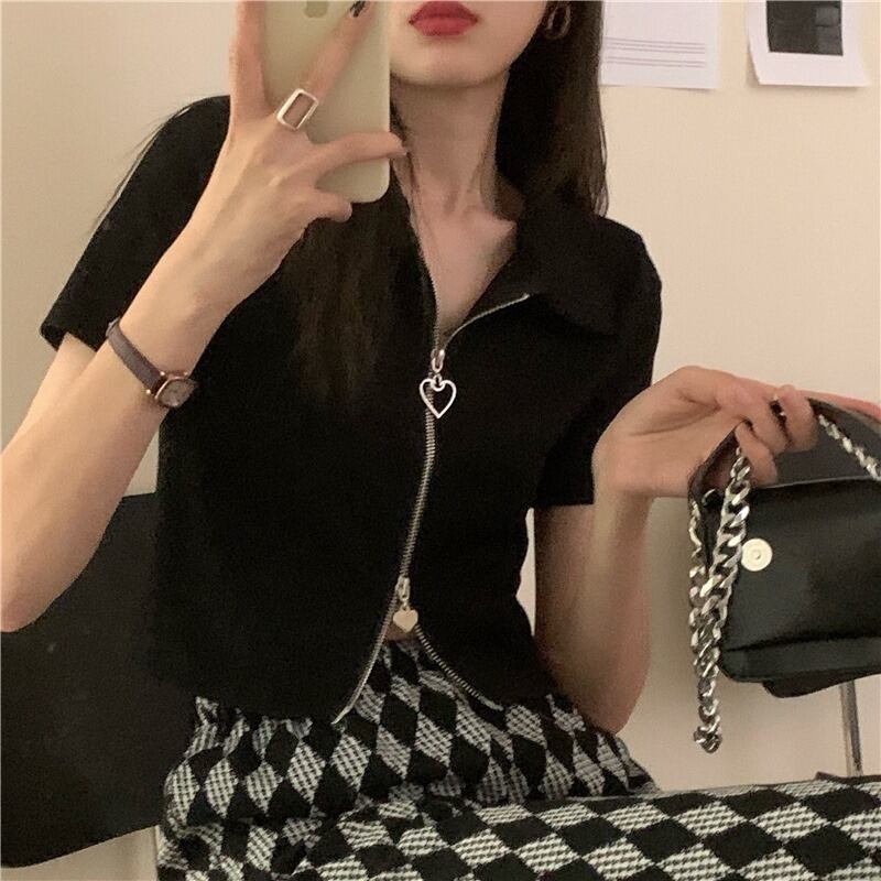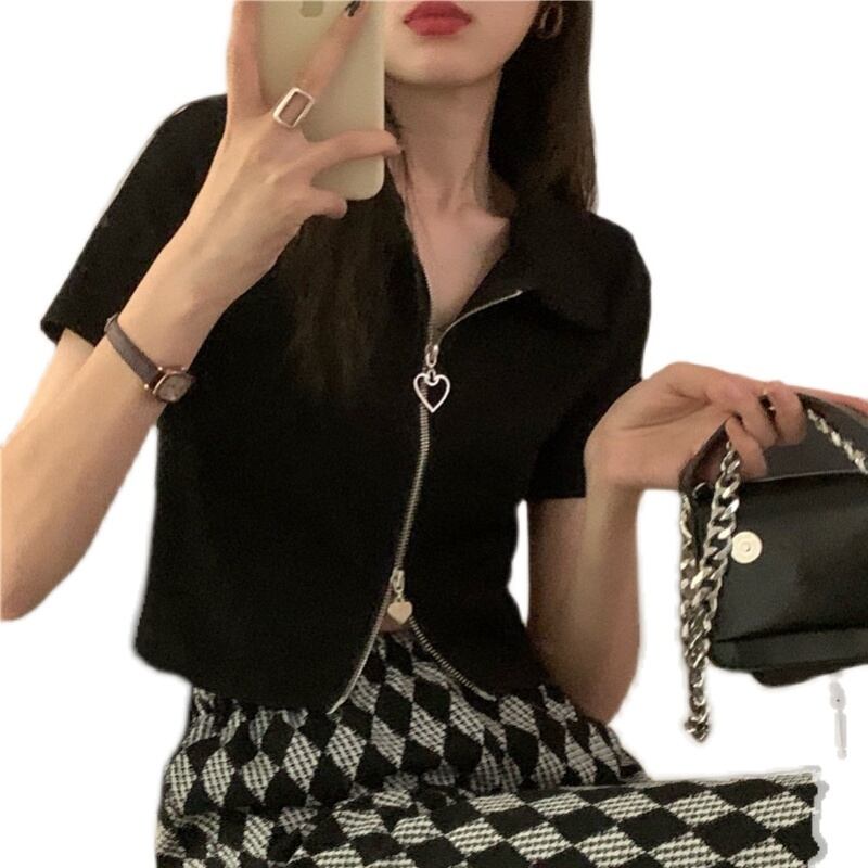 ブラックジッパーニットショートTシャツレディースNEWカーディガン夏服トップス 夏物 コーデ Marchs31169081769