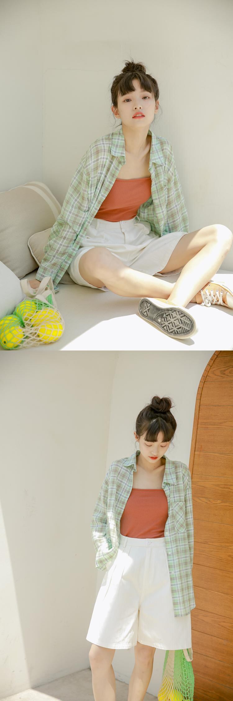格子柄シャツ 夏服薄手スプリングジャケット 秋物トップス ロング 春物 夏物 オータム 長袖 コーデ Marchs14031719526