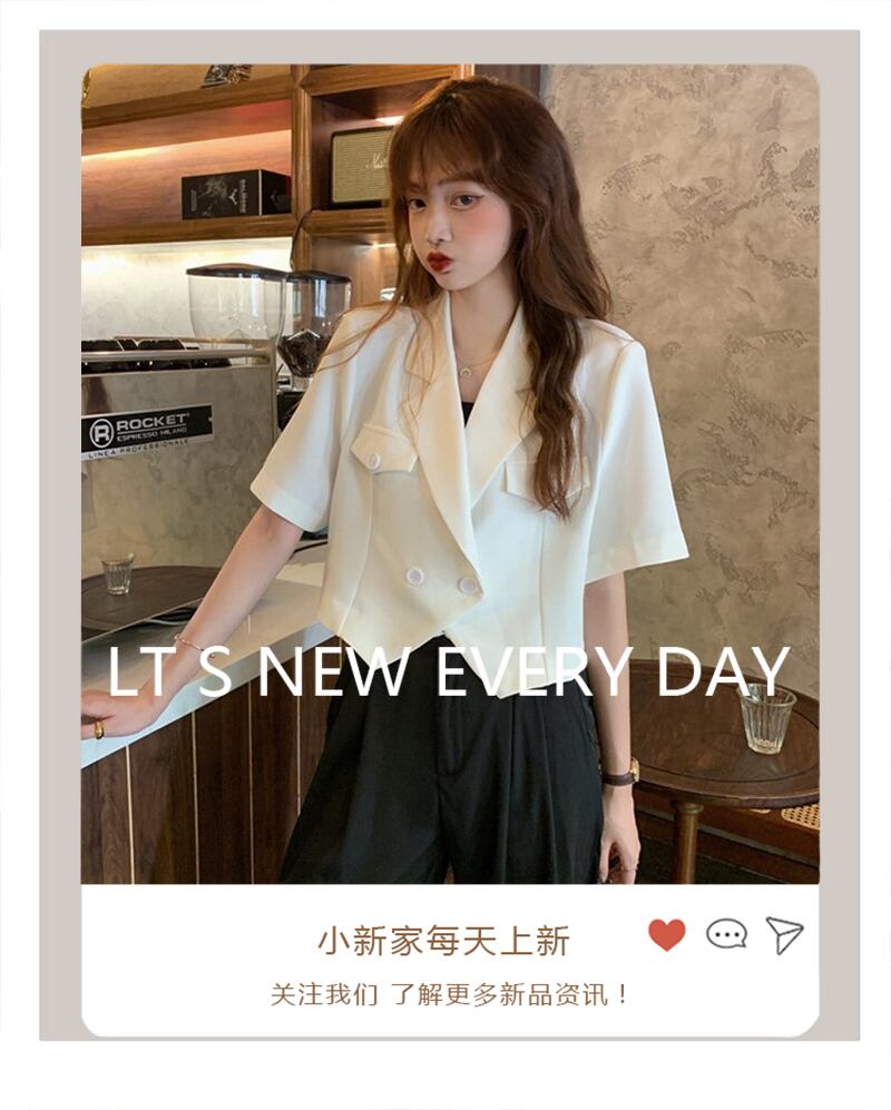 ホワイトショートジャケット スプリング夏服薄手ダブルブレストハイウェスト 春物 夏物 ウエスト コーデ Marchs51500370766