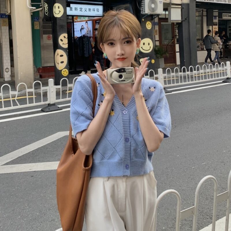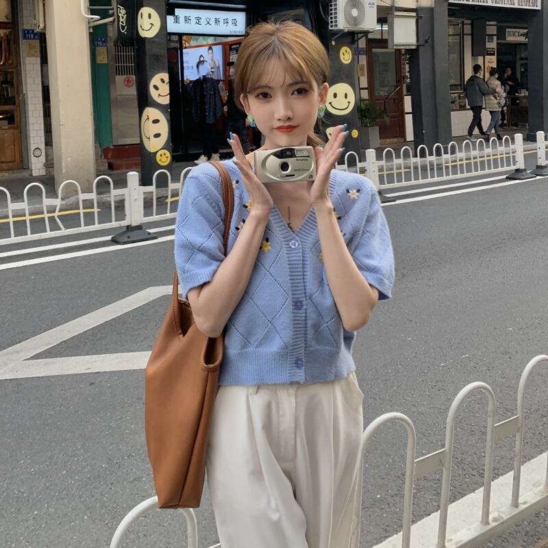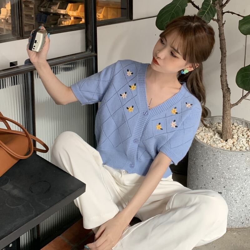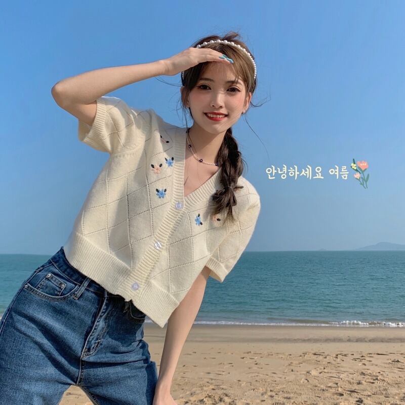 スタイルホワイトTシャツ夏服刺繍ニットショートルーズハイウェストトップス 大人ガーリー スウィート キュート カジュアル 夏物 ウエスト コーデ Marchs55802004101