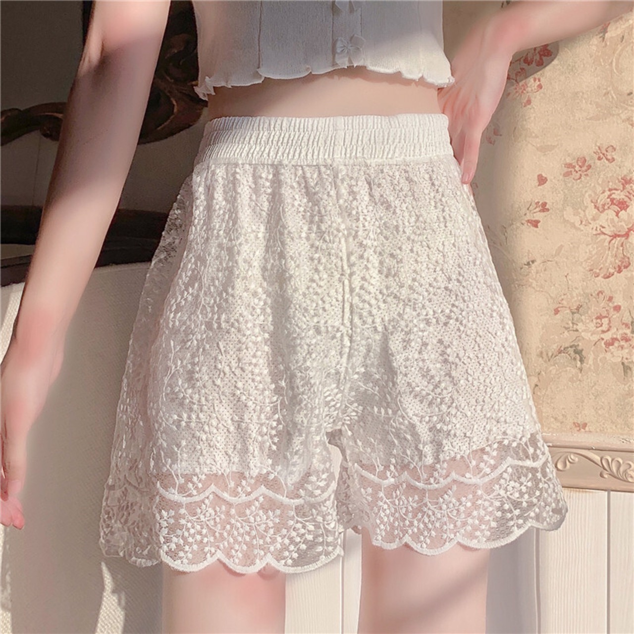 レースゆったりショーツ 夏服薄手パンツ スカート 夏物 コーデ Marchs12953265628