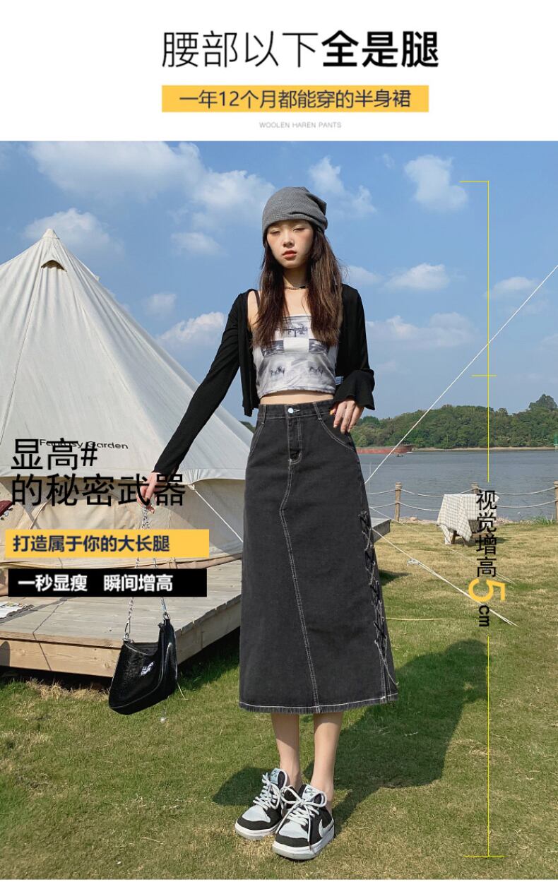 ブラックグレースカート 夏服ハイウェストウェストスリットロング 夏物 ウエスト ミドル丈 コーデ Marchs87355010862