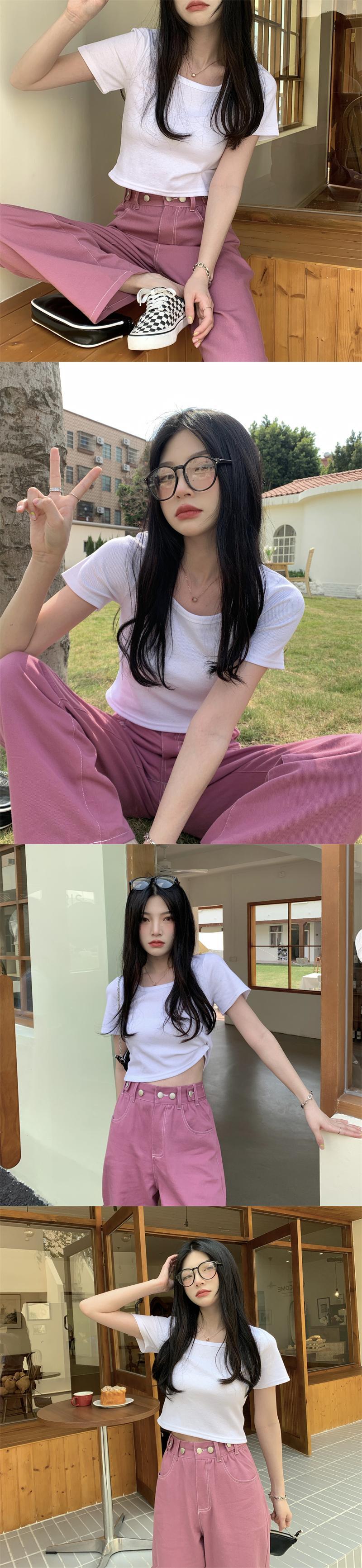 カラーTシャツショート夏服トップス 夏物 スクウェア コーデ Marchs24509365747