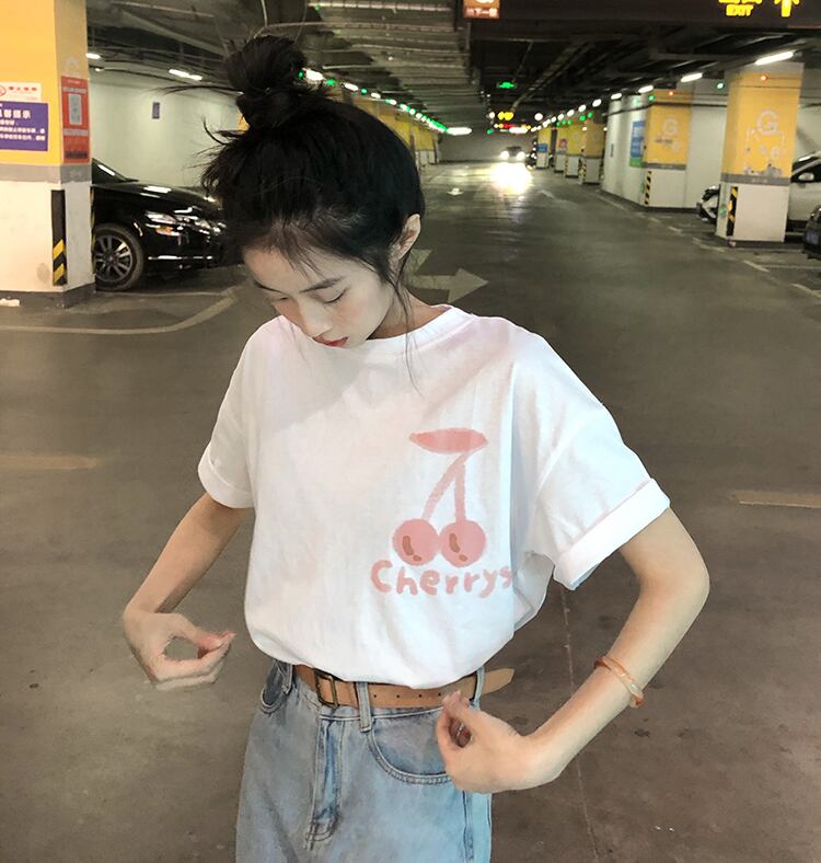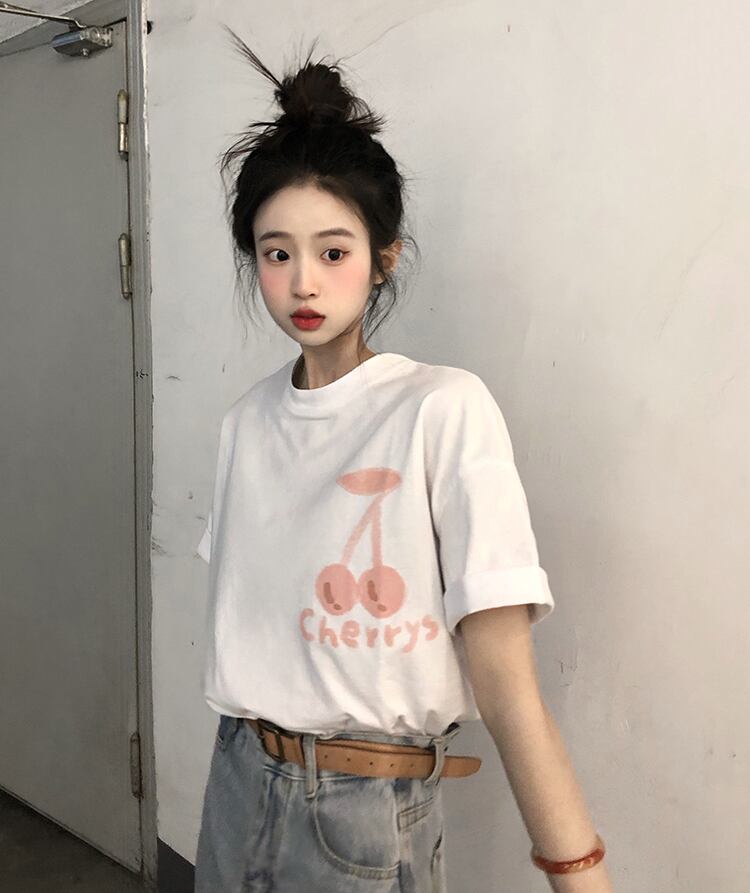 夏服ワンピースホワイトプリントTシャツ韓国ファッションスタイルトップス レディース 夏物 コーデ Marchs60187276917