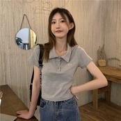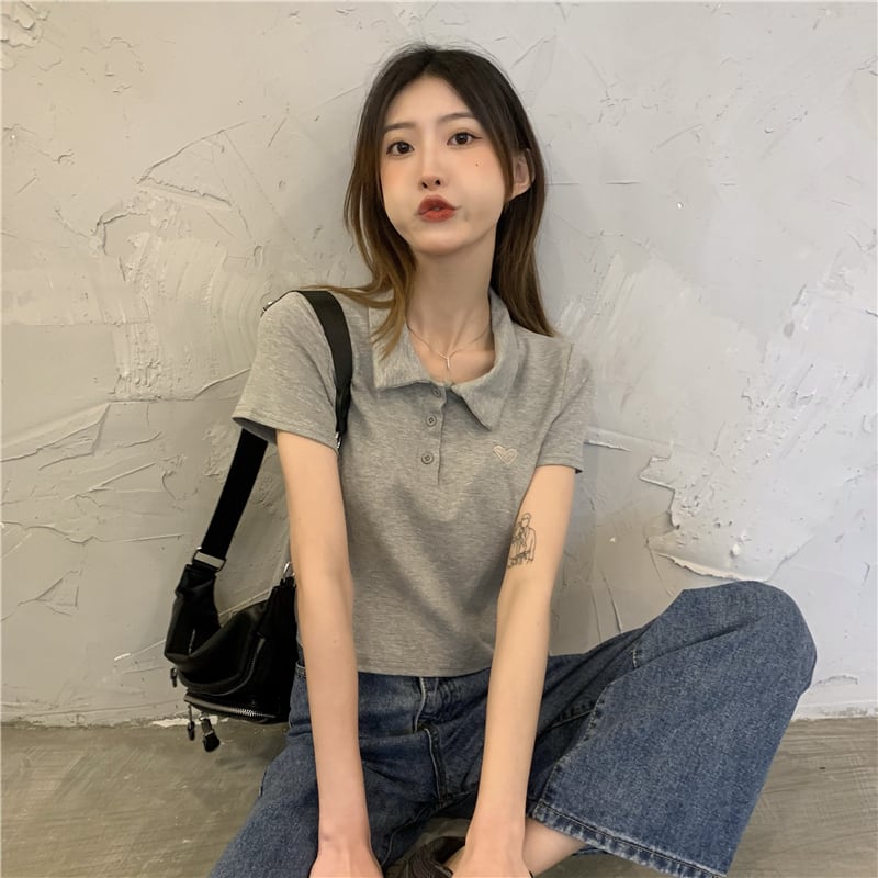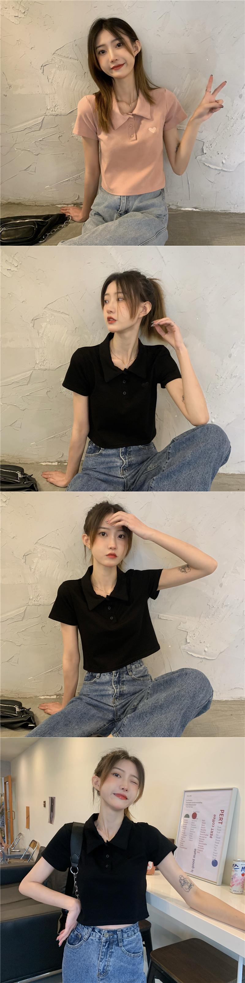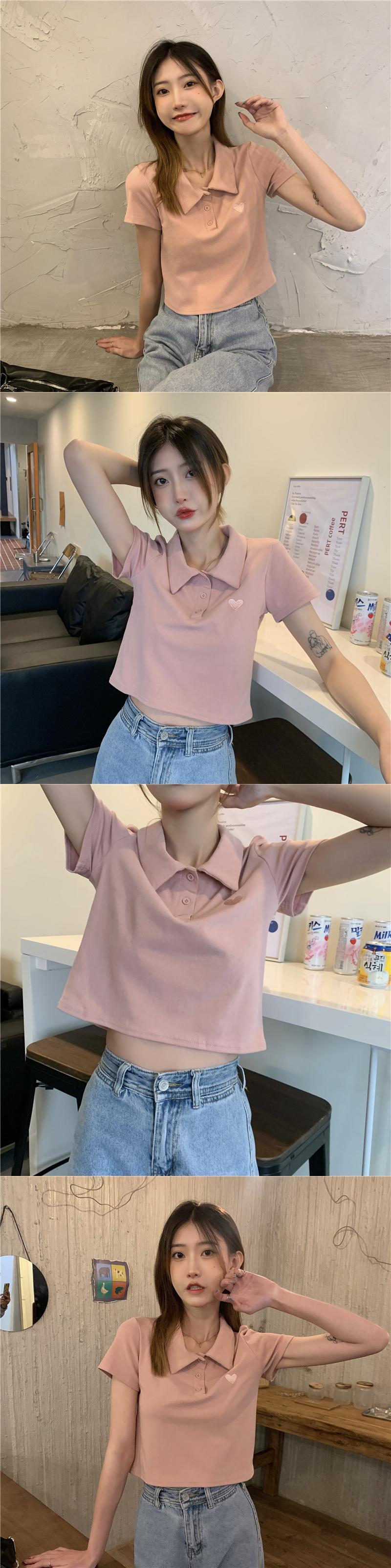 刺繍カラーTシャツショートスリムハイウェストトップス 夏服 ピンク 夏物 ウエスト コーデ Marchs59351252708