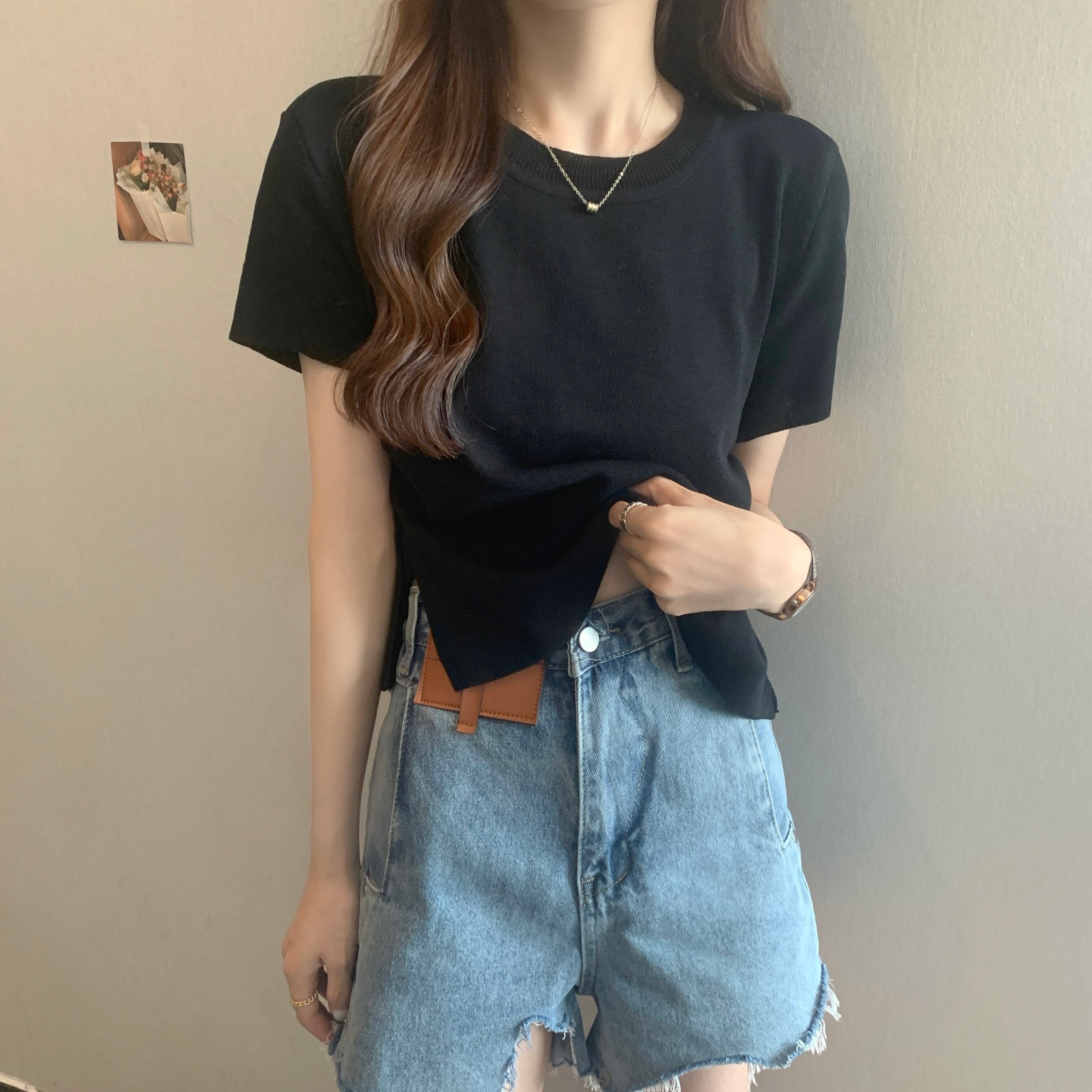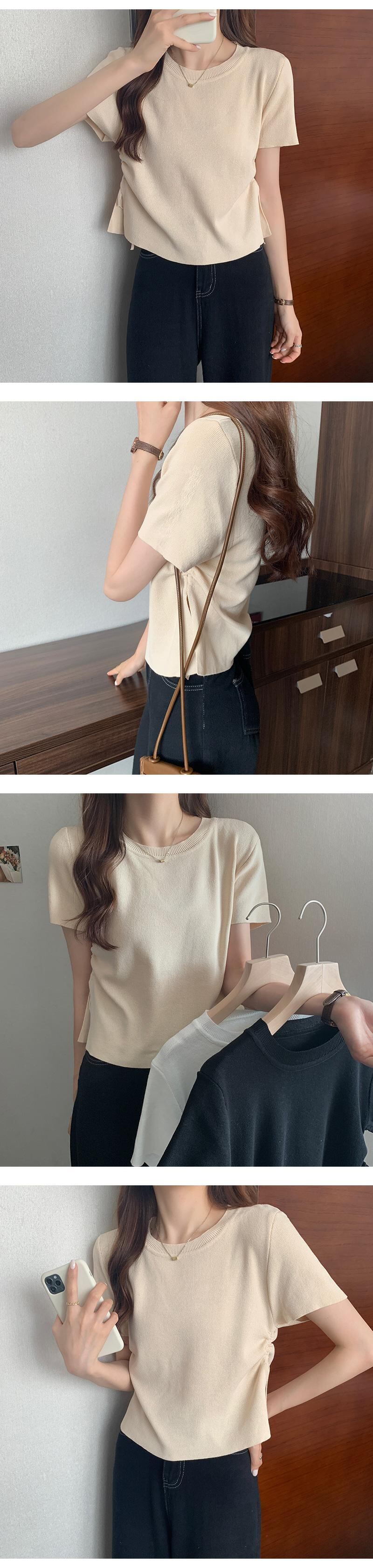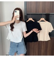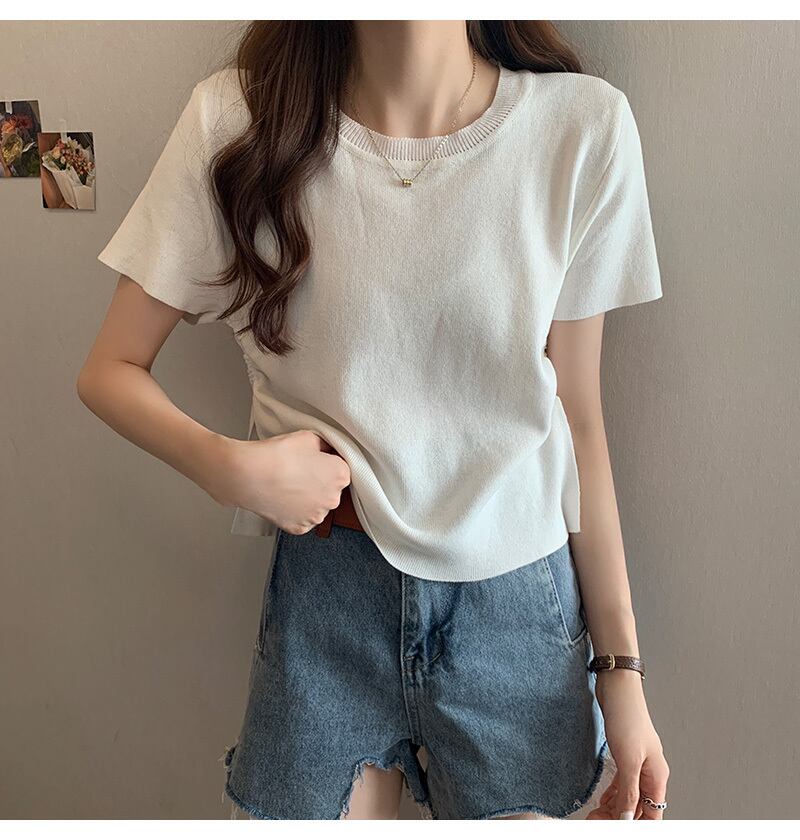 ギャザーハイウェストウェストセーター 夏服薄手トップス 半袖スリーブTシャツ ショート ハーフスリーブ 夏物 シルク ウエスト コーデ Marchs42353020463