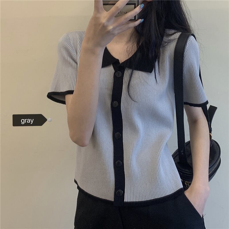 スタイルカラースタンダードニットショートカーディガン夏服Tシャツトップス レディース レトロ 大人ガーリー スウィート キュート カジュアル 夏物 コーデ Marchs17302773635