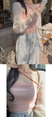 色:ホワイトニットブラウス,ピンクのニットブラウス,ピンクメッシュホルターネックチューブトップ,ネイビーブルーメッシュホルターネックチューブトップ,アプリコットメッシュホルターネックチューブトップ
