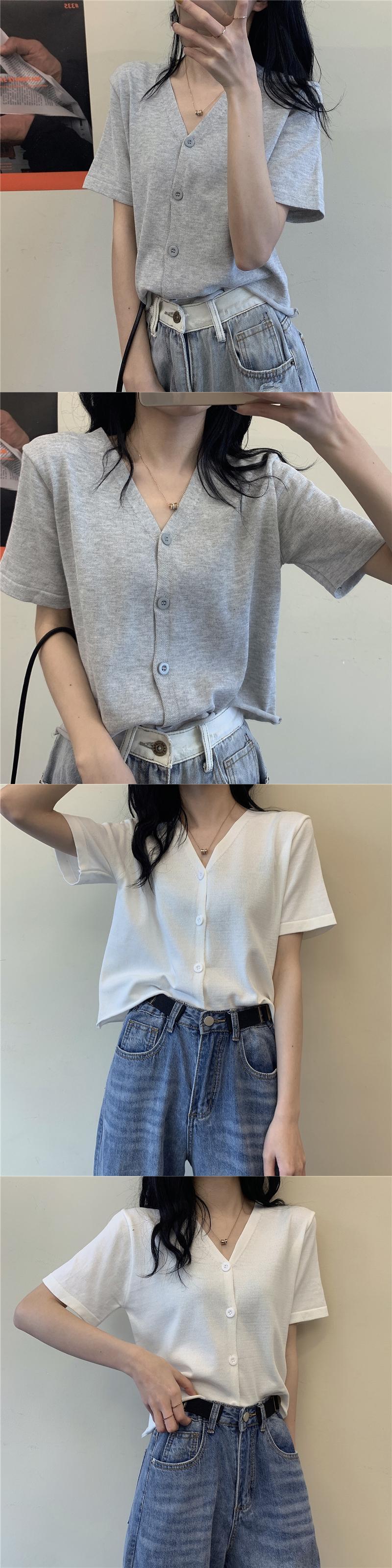 夏服スタイルトップス ショートVネックニットボタンカーディガンTシャツ 夏物 シルク コーデ Marchs8468423180
