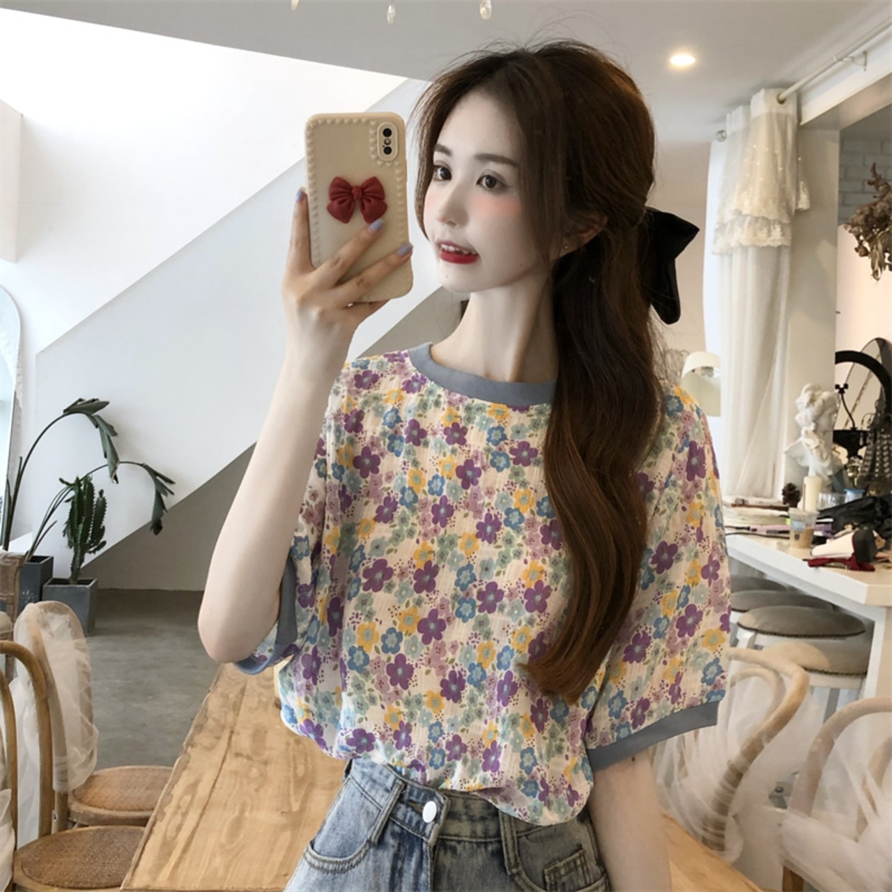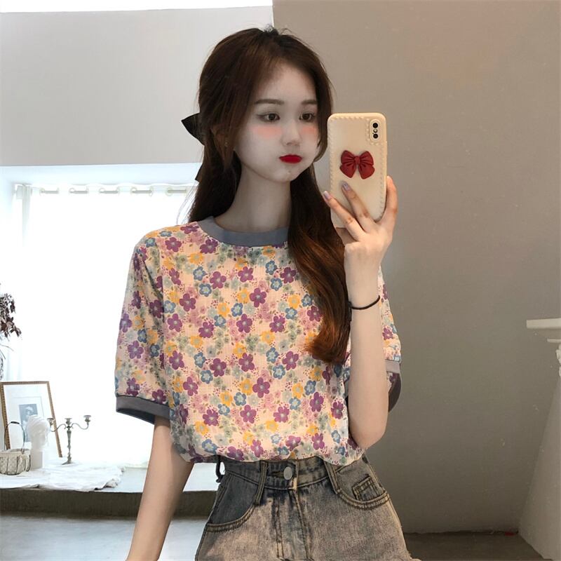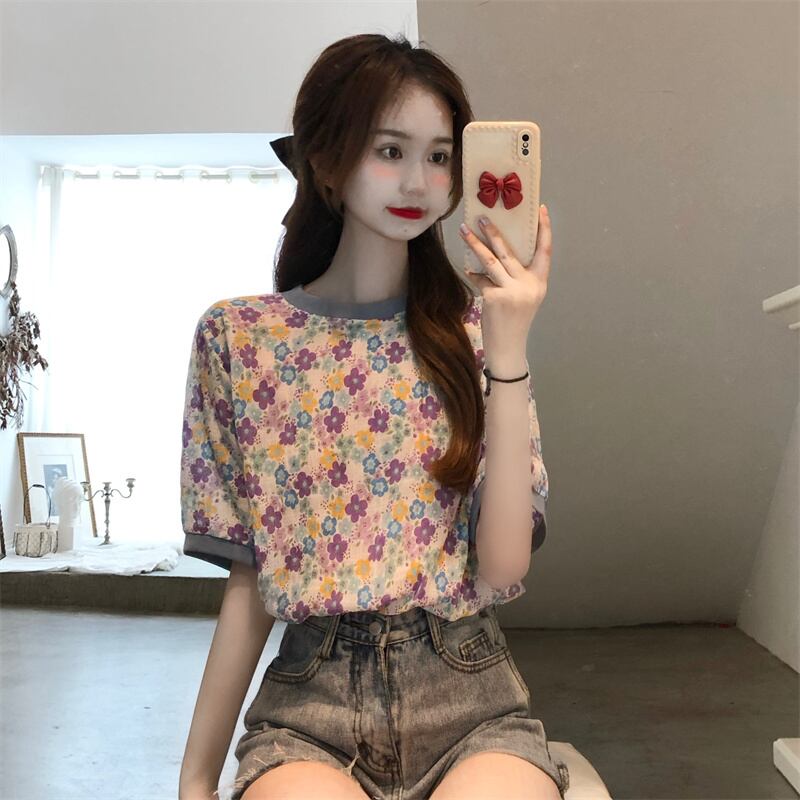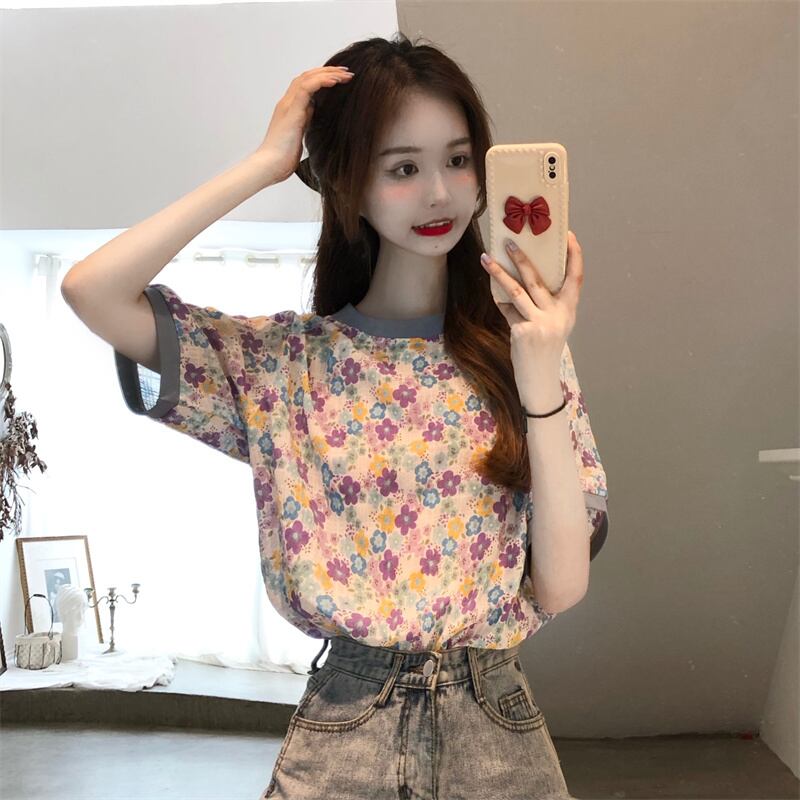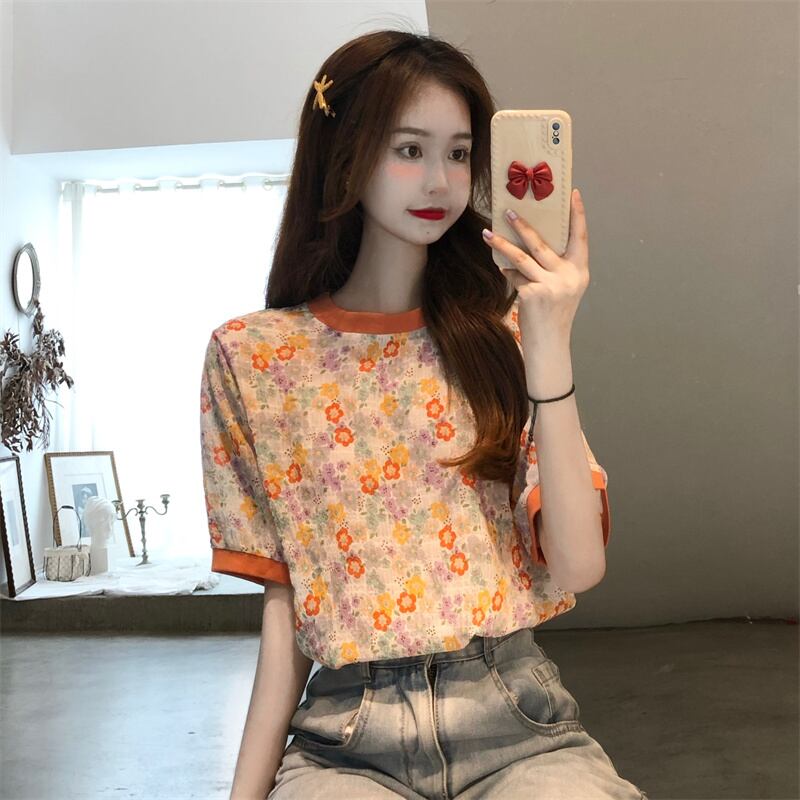 トップス Flowerデザイン シャツ Tシャツヴィンテージ夏服 夏物 フラワーデザイン ビンテージ コーデ Marchs92687825947
