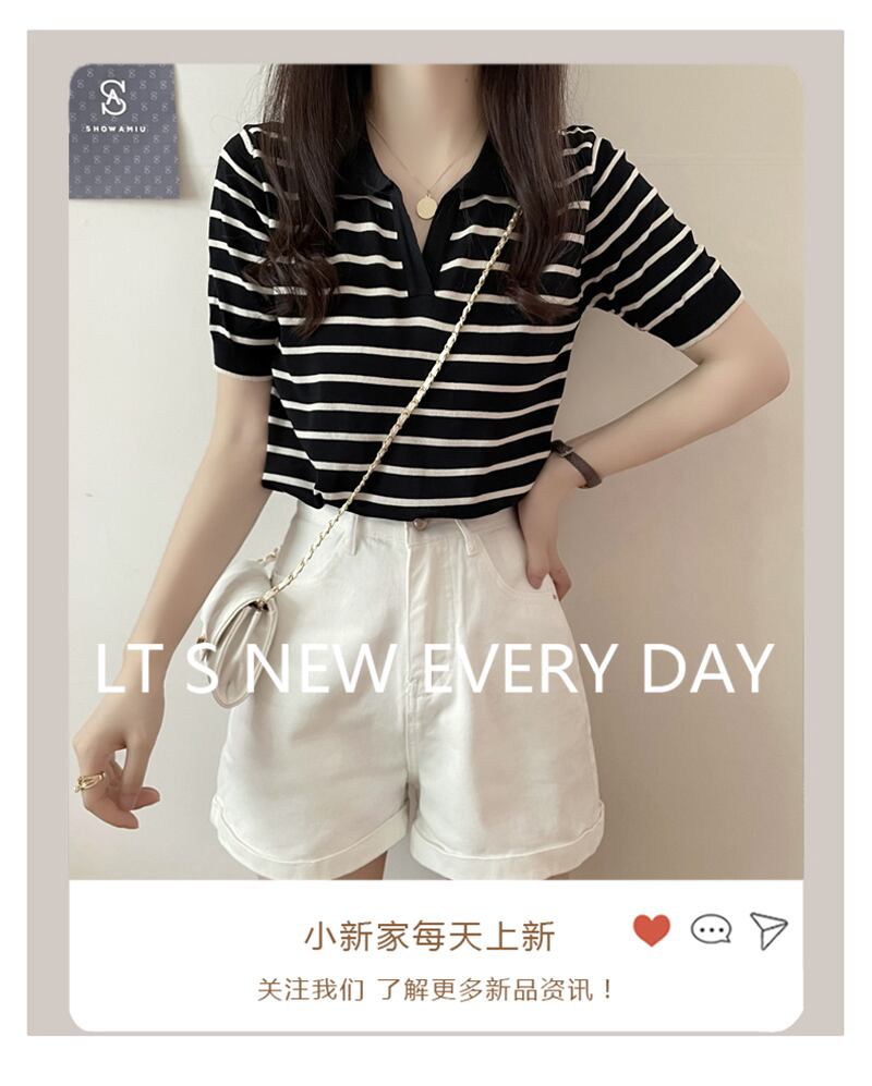 カラー夏服薄手セーター 韓国ファッションルーズストライプTシャツトップス 夏物 シルク スタイル コーデ Marchs50912548559