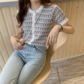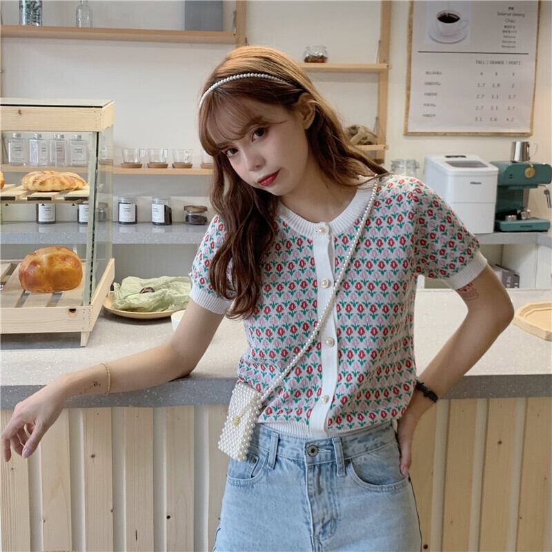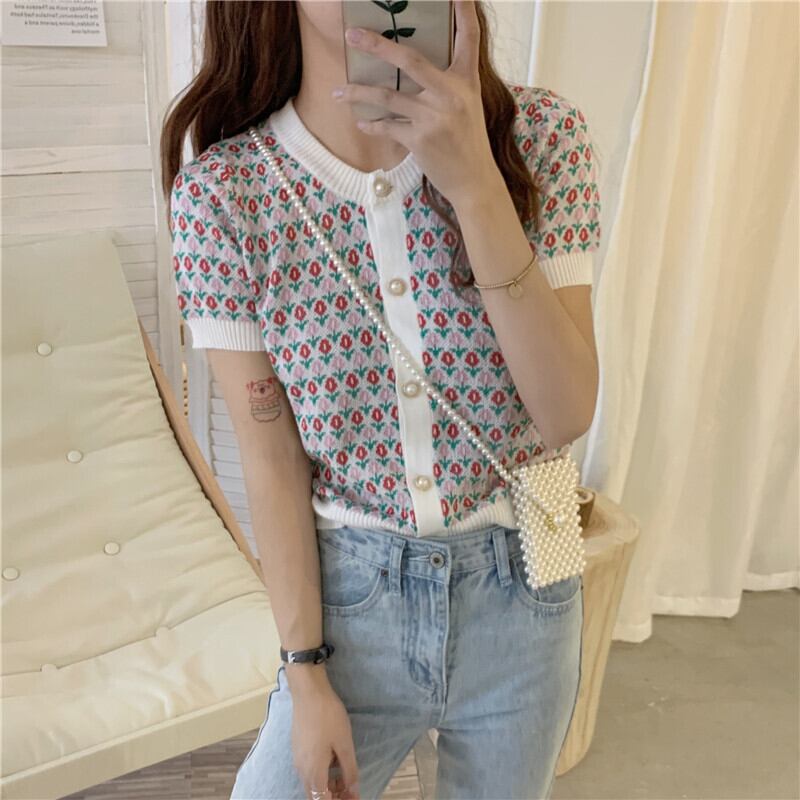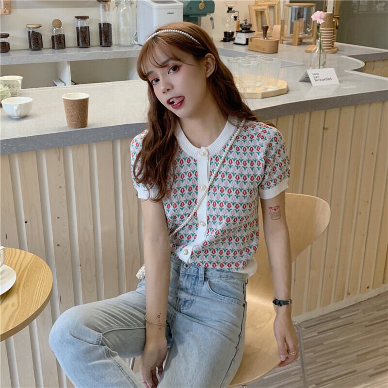 ラウンドネックスリムニットショートTシャツNEW夏服薄手トップス 夏物 Oネック コーデ Marchs1669975810