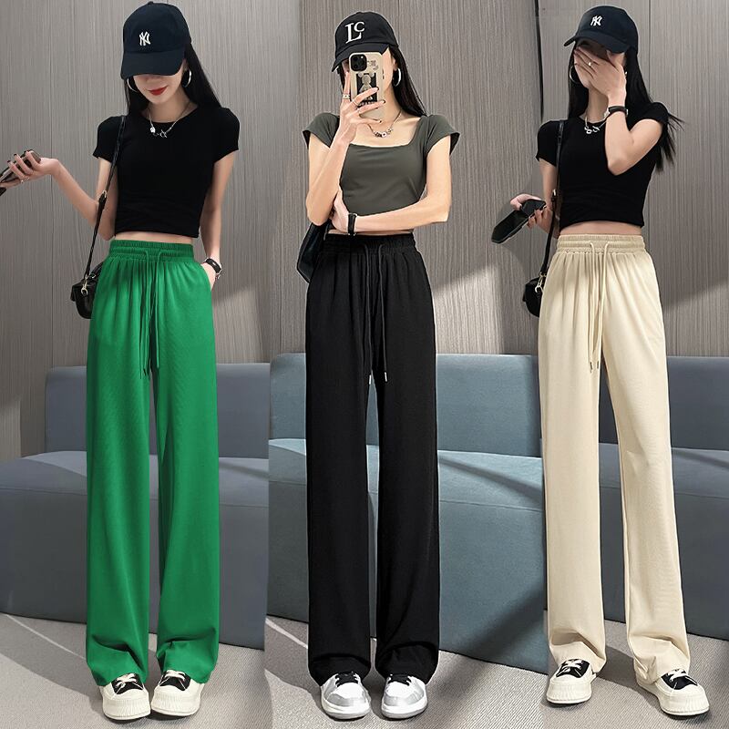 グリーンパンツ ハイウェストウェスト薄手スプリング夏服ルーズカジュアルギャザー 春物 夏物 ウエスト コーデ Marchs74900828402
