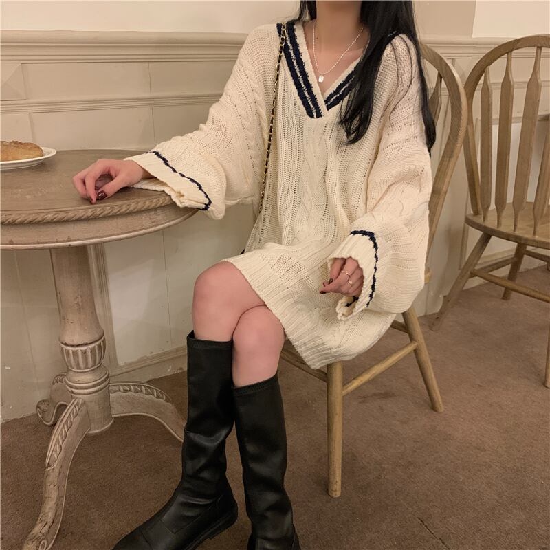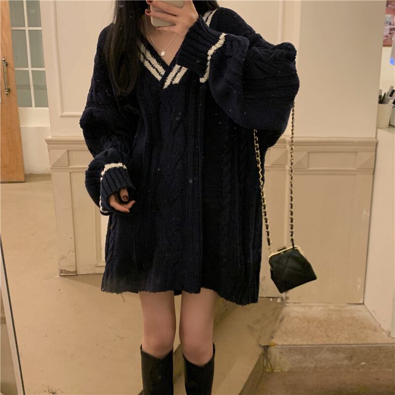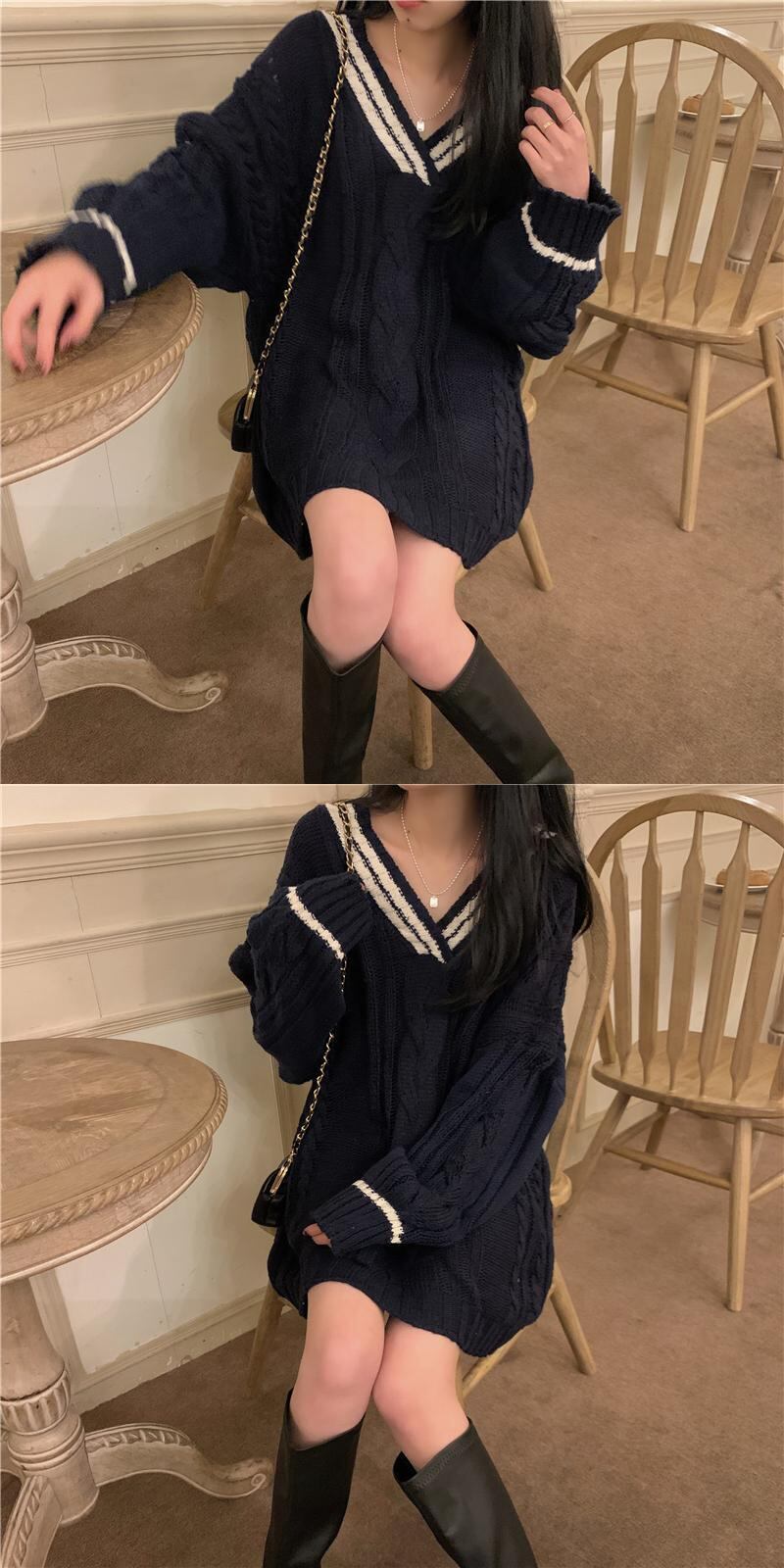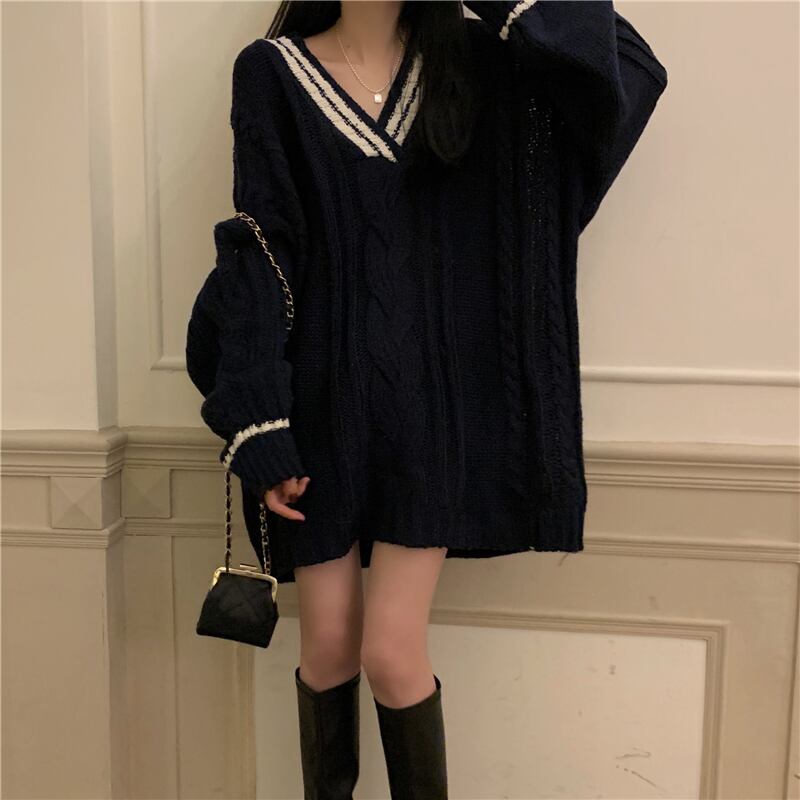 ブラックセーター スプリング秋物ジャケット スタイルスタンダードルーズ レトロ 春物 オータム ミドル丈 コーデ Marchs88859971489