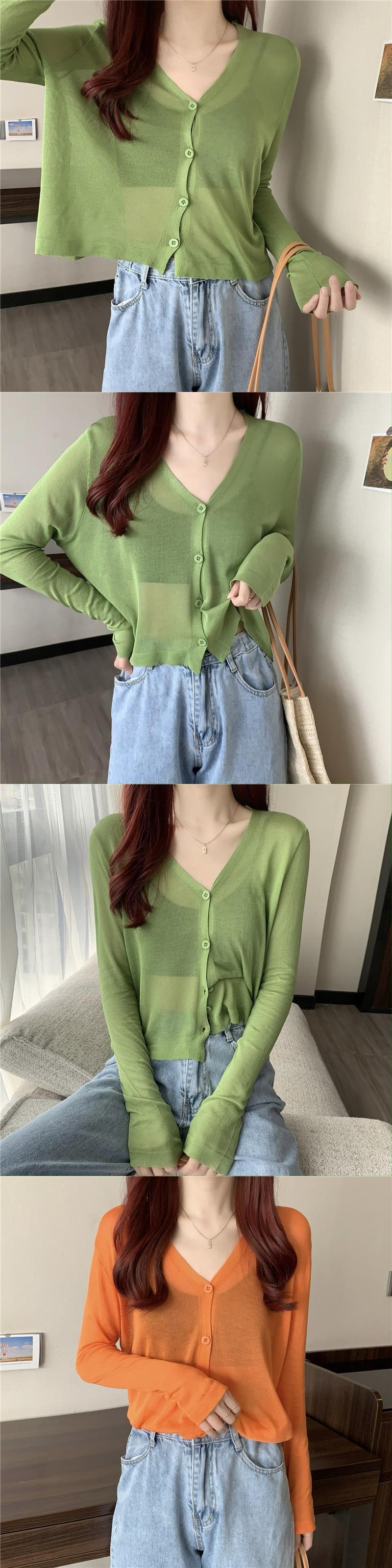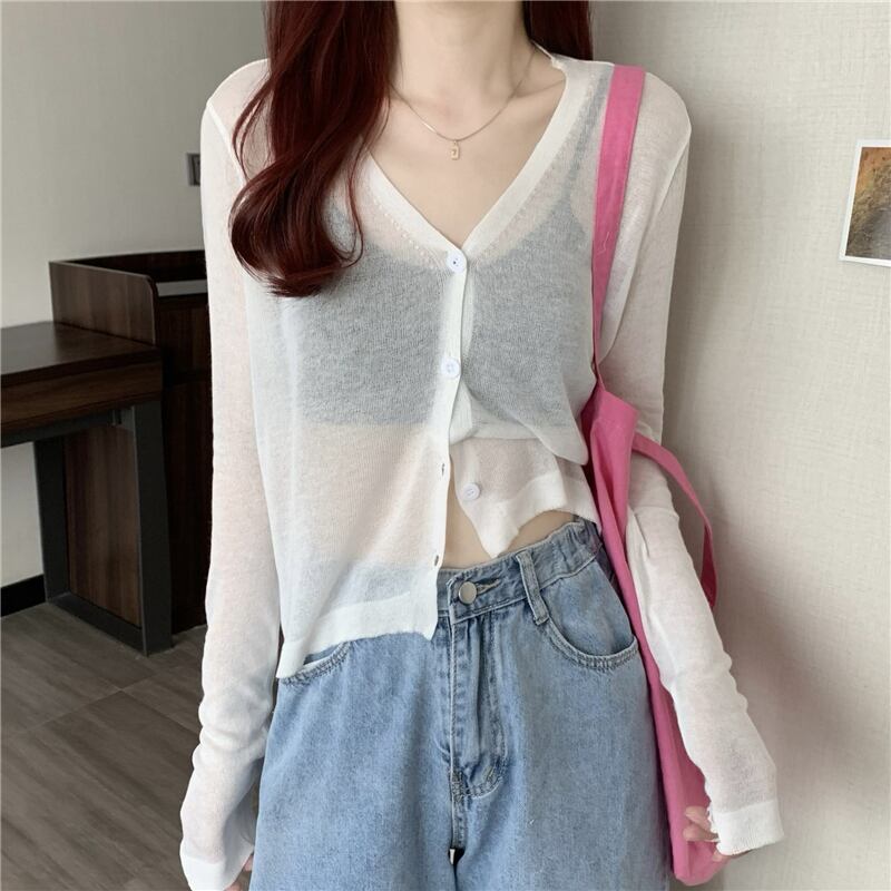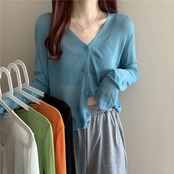 カーディガン薄手夏服ブラウス ショートトップス セーター ニットジャケット ロング 夏物 シルク 長袖 コーデ Marchs86439360317