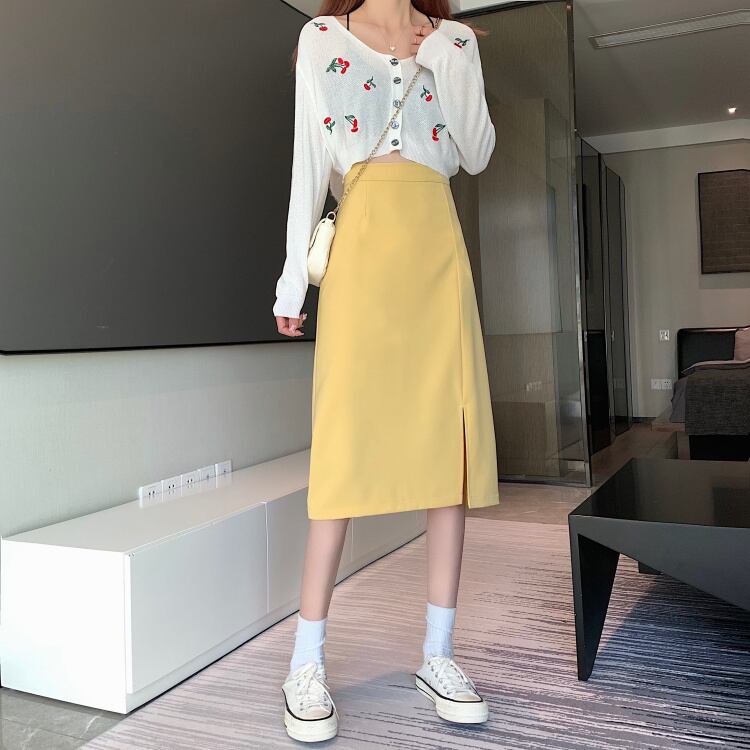 スリットスカート 夏服ハイウェストAライン 夏物 ウエスト ミドル丈 コーデ Marchs99256121886