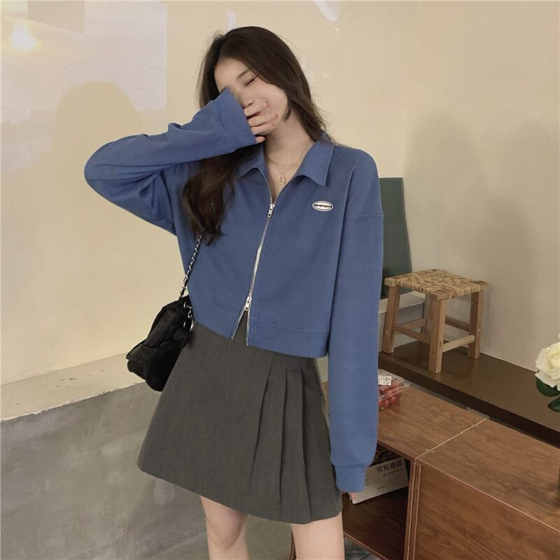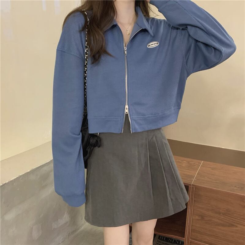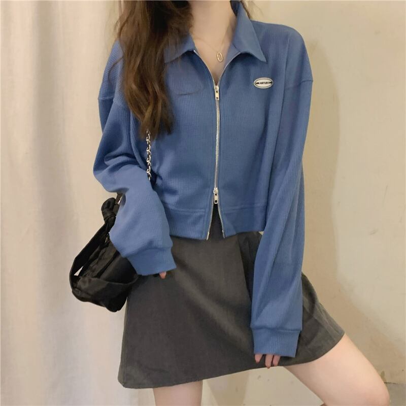 カラーダブルジッパーセーター ジャケット スプリングショートトップス ルーズカジュアルレディース ロング 春物 長袖 コーデ Marchs87039781921