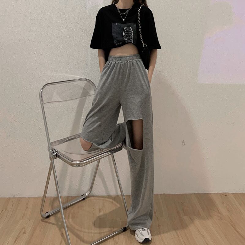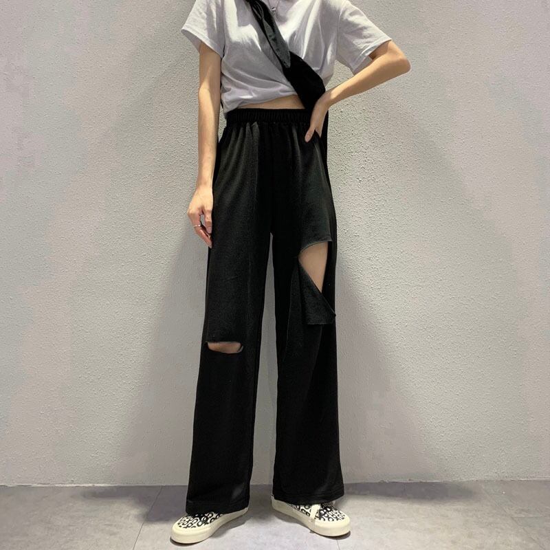 ブラックカジュアルパンツ スプリング夏服ハイウェストウェストルーズ 春物 夏物 ウエスト コーデ Marchs16023180487